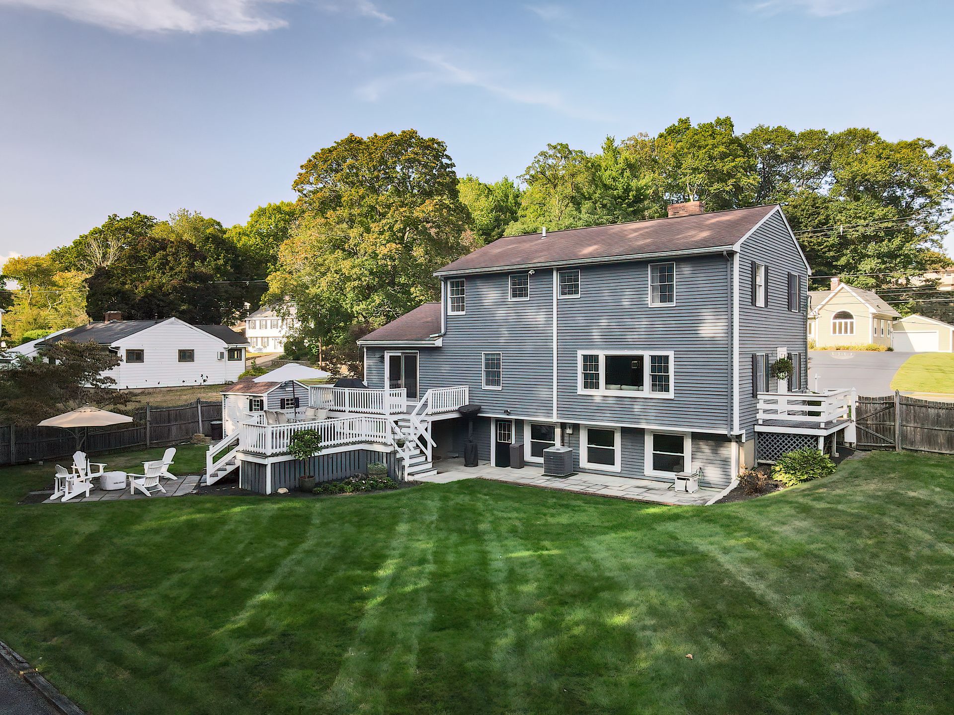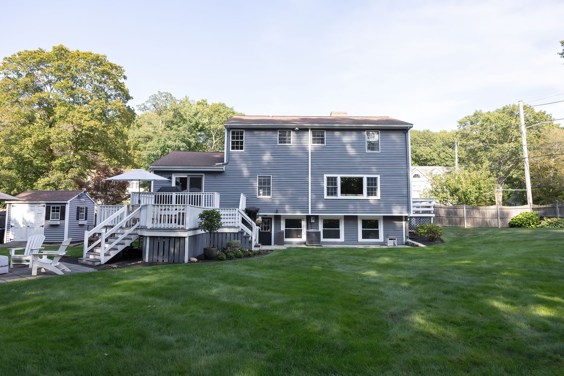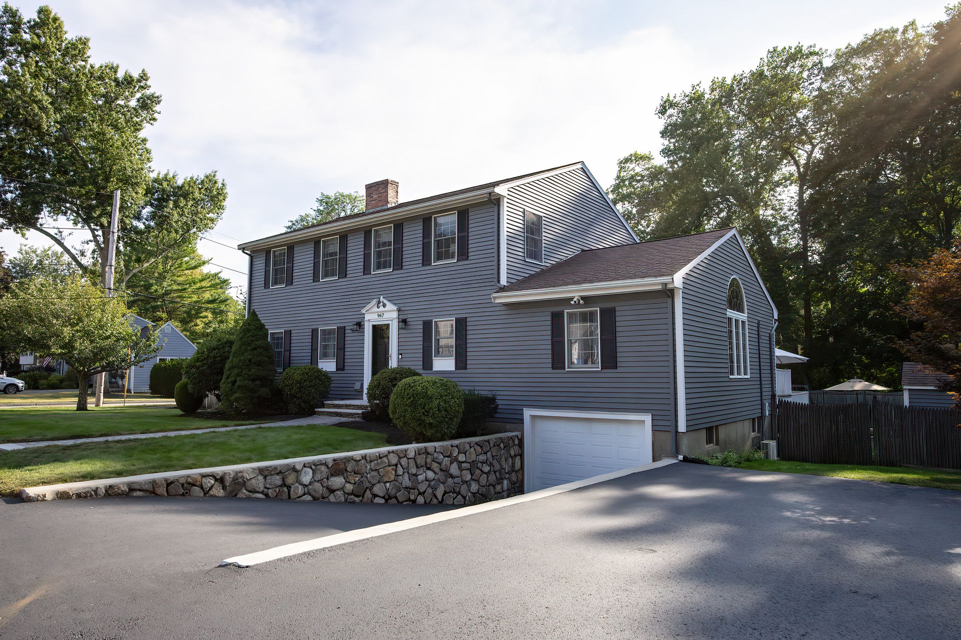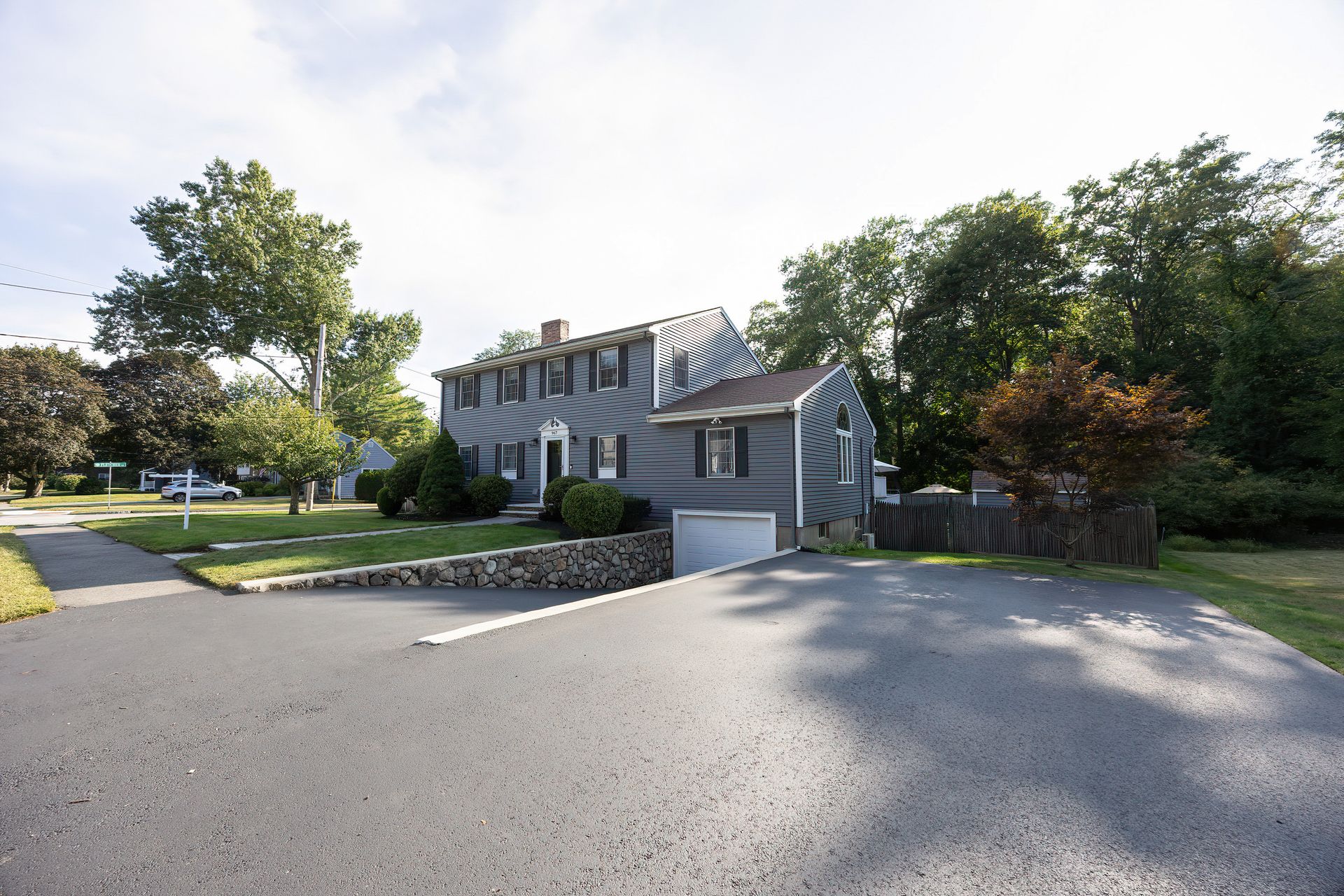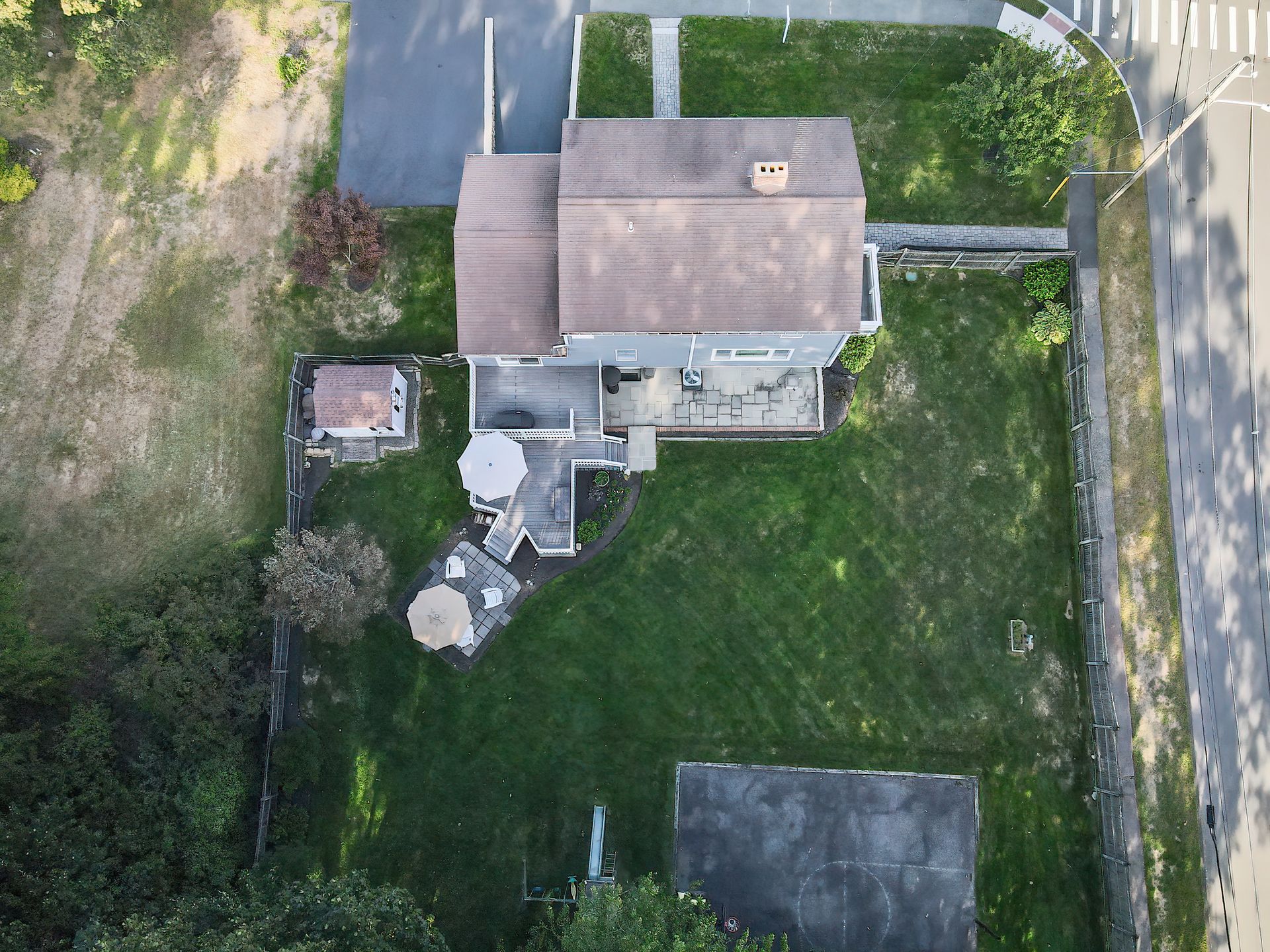 Nestled on a spacious corner lot, this charming three-bedroom Colonial offers an exceptional blend of classic design and modern amenities. The fully fenced yard is a private retreat featuring a deck, patio, shed and sport court—perfect for outdoor entertaining and recreation. Inside, the first floor boasts a well-appointed kitchen with gas cooking, granite countertops and an inviting eat-in area. The fireplaced living room flows seamlessly into the dining area, while a large vaulted-ceiling family room with sliders opens directly to the deck and yard, creating a bright and airy gathering space. A convenient half bath with laundry completes the main level. Upstairs, you'll find three generously sized bedrooms and a full bath with double sinks and a shower/tub combo. The spacious primary suite includes an ensuite bathroom and a sunlit walk-in closet with windows. The finished lower level offers versatile space ideal for a playroom, home office, or media room, with walkout access to the patio and yard, an additional half bath and a one-car garage. This home combines timeless appeal with thoughtful updates—ready to welcome its next owner.