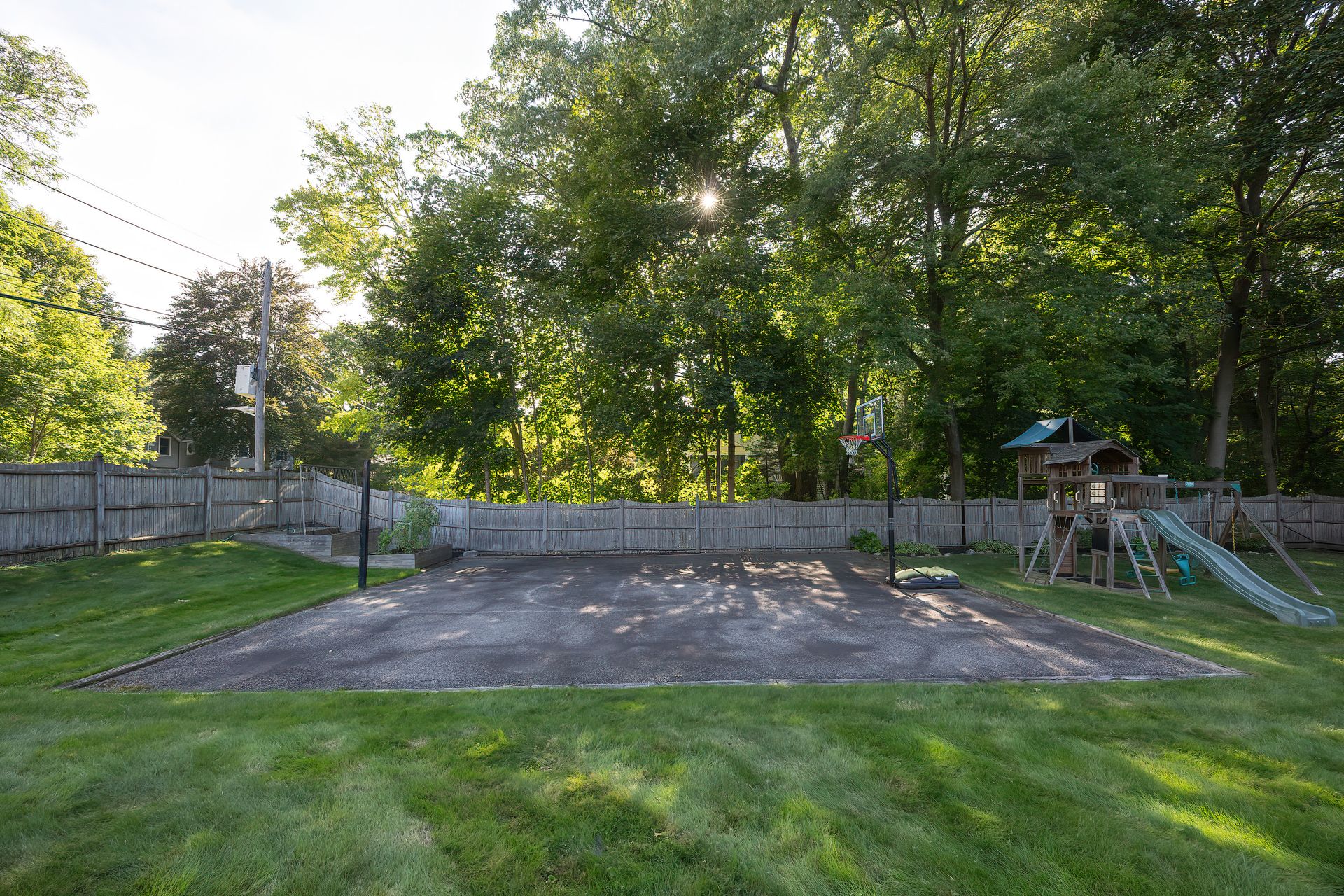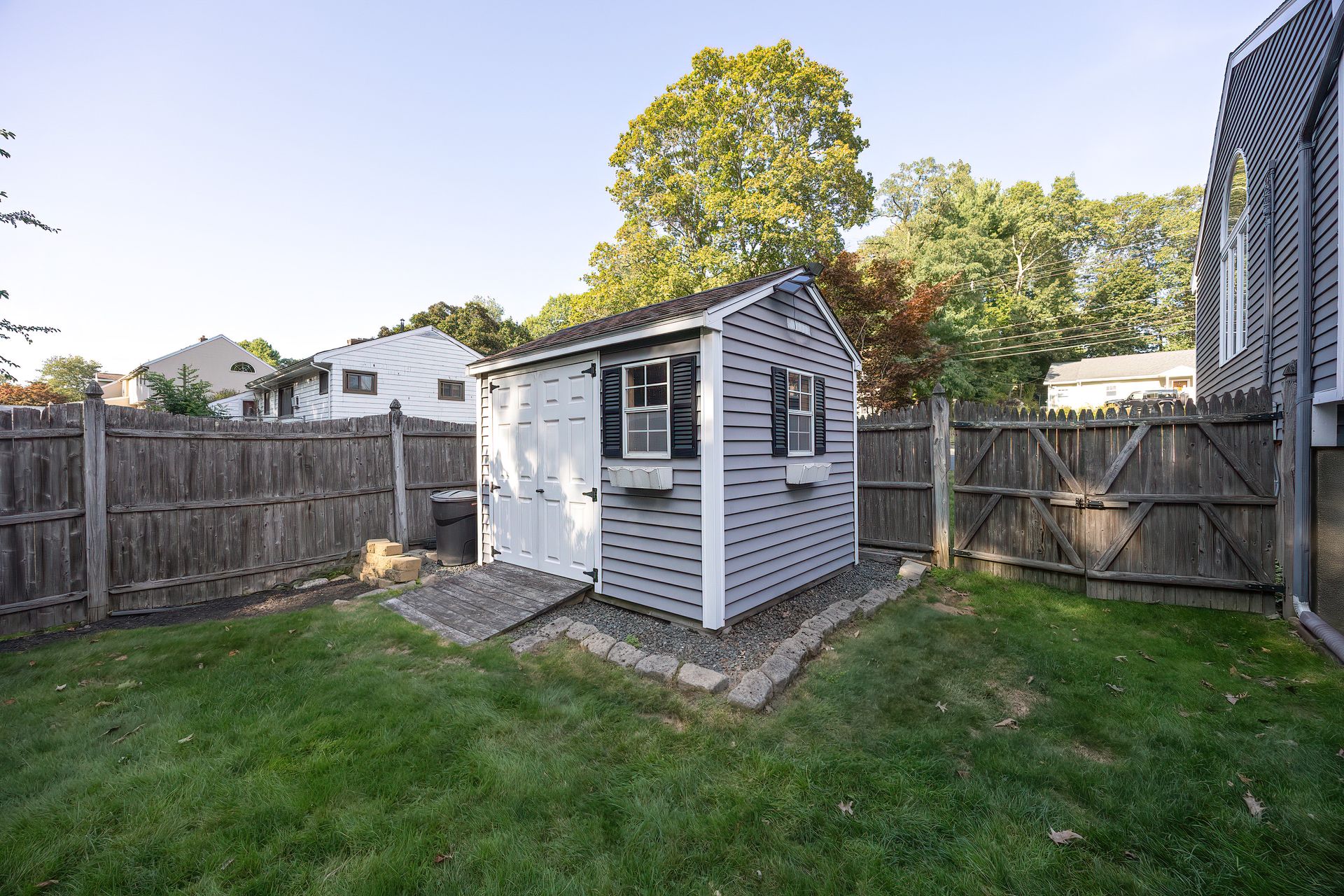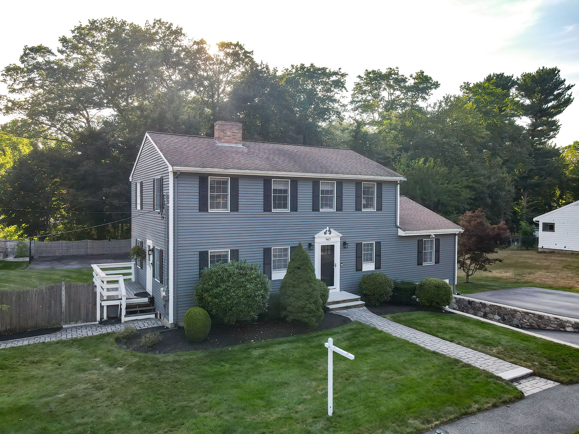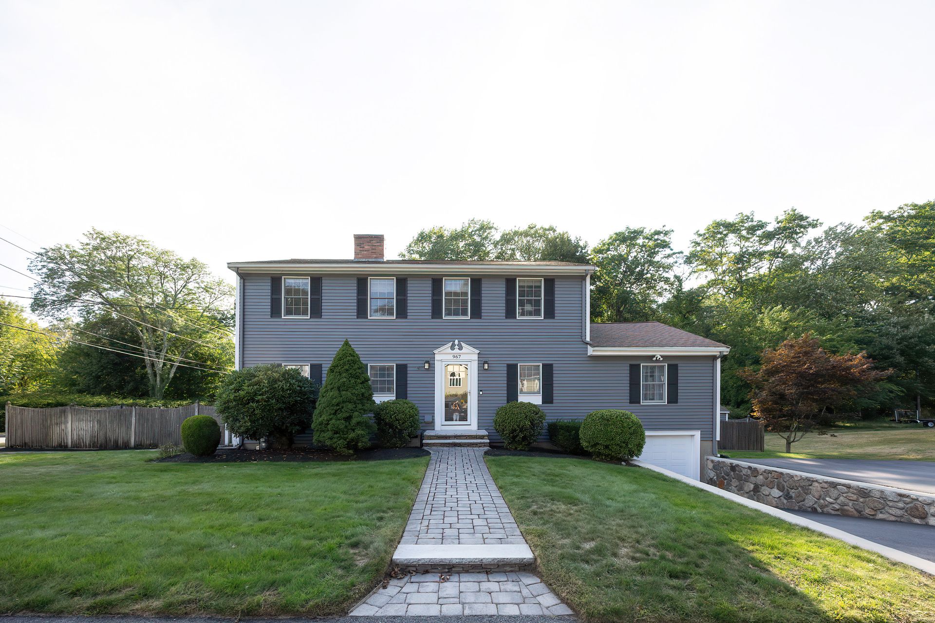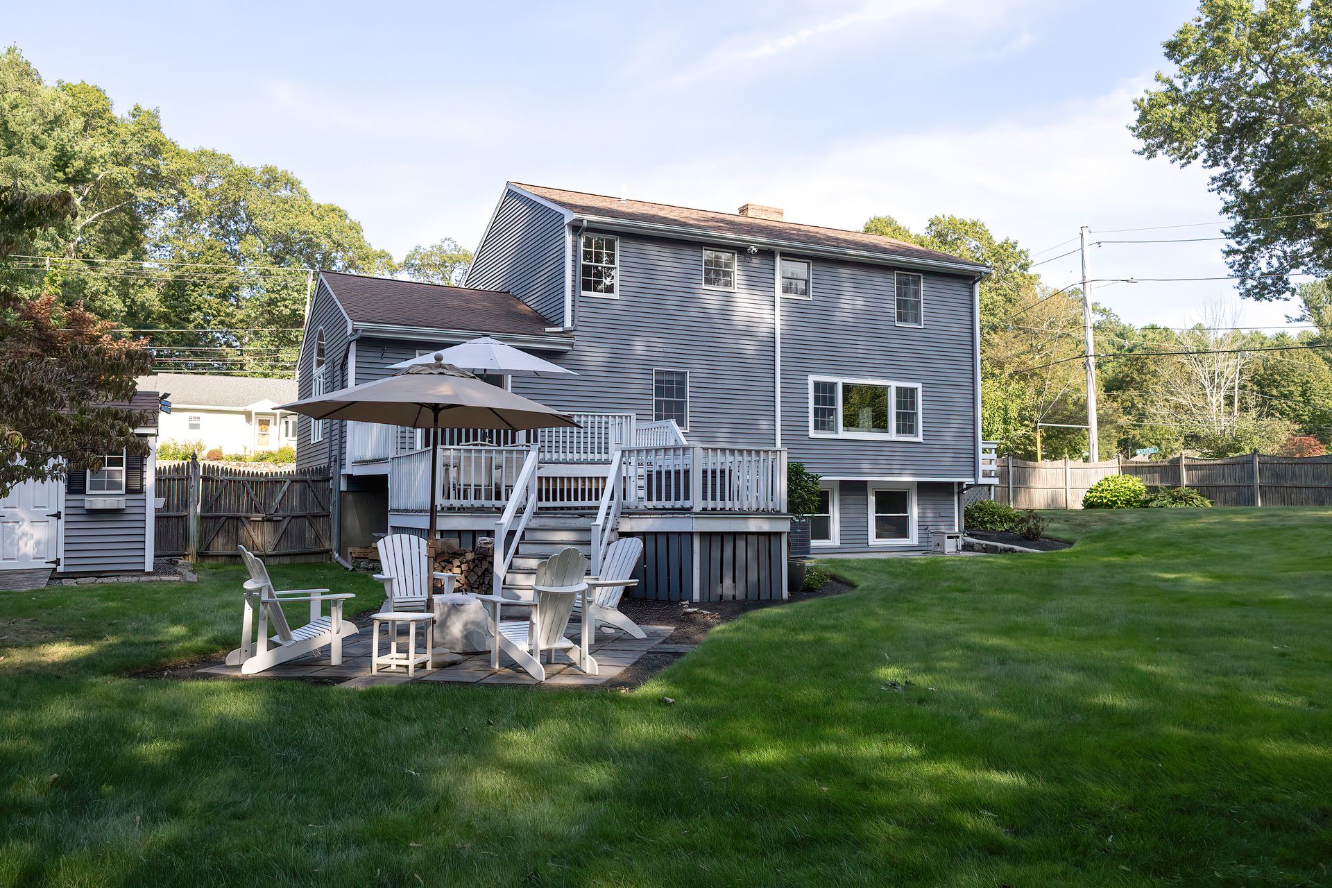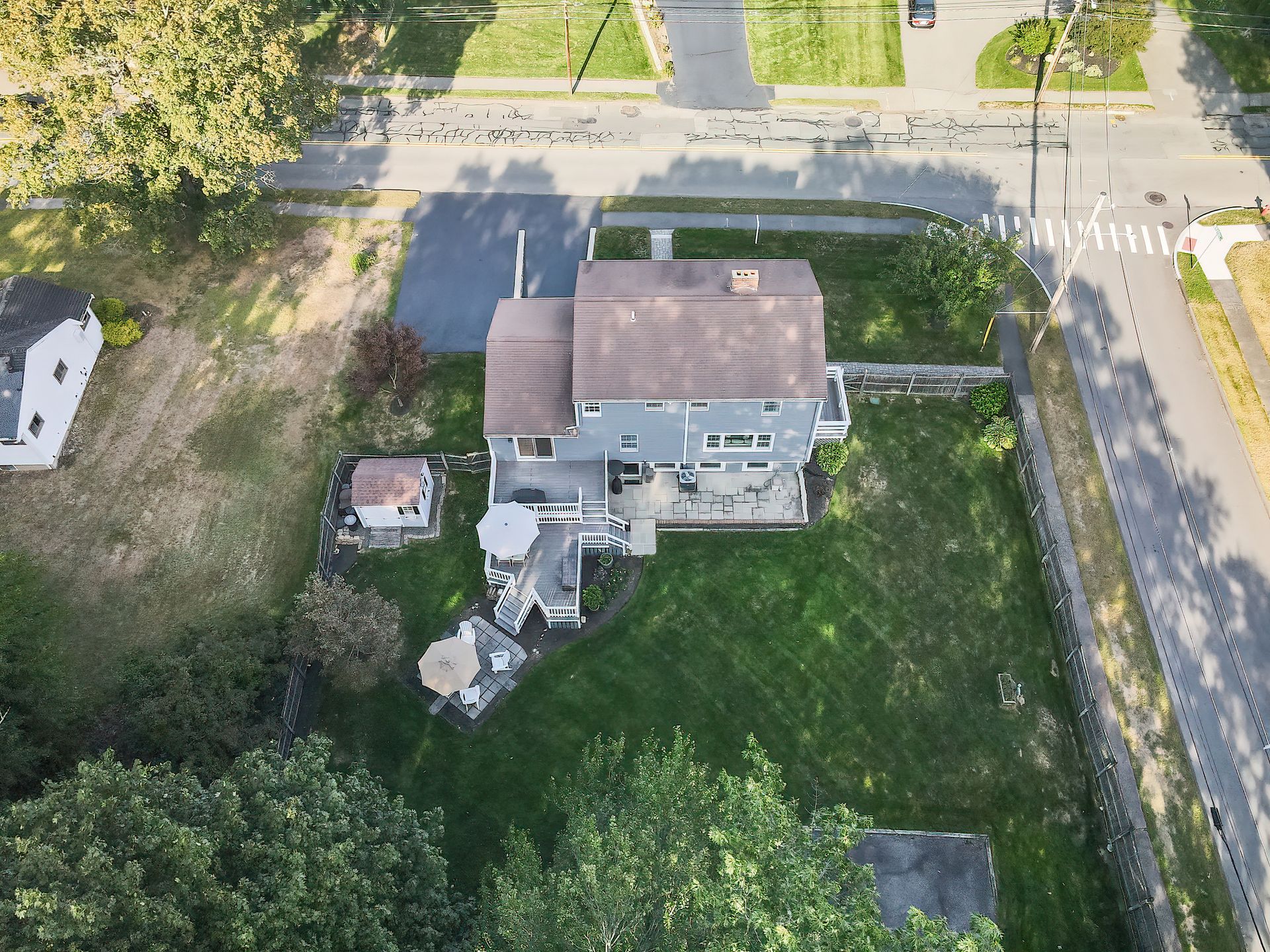 Nestled on a spacious corner lot, this charming three-bedroom Colonial offers an exceptional blend of classic design and modern amenities. The fully fenced yard is a private retreat featuring a deck, patio, shed and sport court—perfect for outdoor entertaining and recreation. Inside, the first floor boasts a well-appointed kitchen with gas cooking, granite countertops and an inviting eat-in area. The fireplaced living room flows seamlessly into the dining area, while a large vaulted-ceiling family room with sliders opens directly to the deck and yard, creating a bright and airy gathering space. A convenient half bath with laundry completes the main level. Upstairs, you'll find three generously sized bedrooms and a full bath with double sinks and a shower/tub combo. The spacious primary suite includes an ensuite bathroom and a sunlit walk-in closet with windows. The finished lower level offers versatile space ideal for a playroom, home office, or media room, with walkout access to the patio and yard, an additional half bath and a one-car garage. This home combines timeless appeal with thoughtful updates—ready to welcome its next owner.