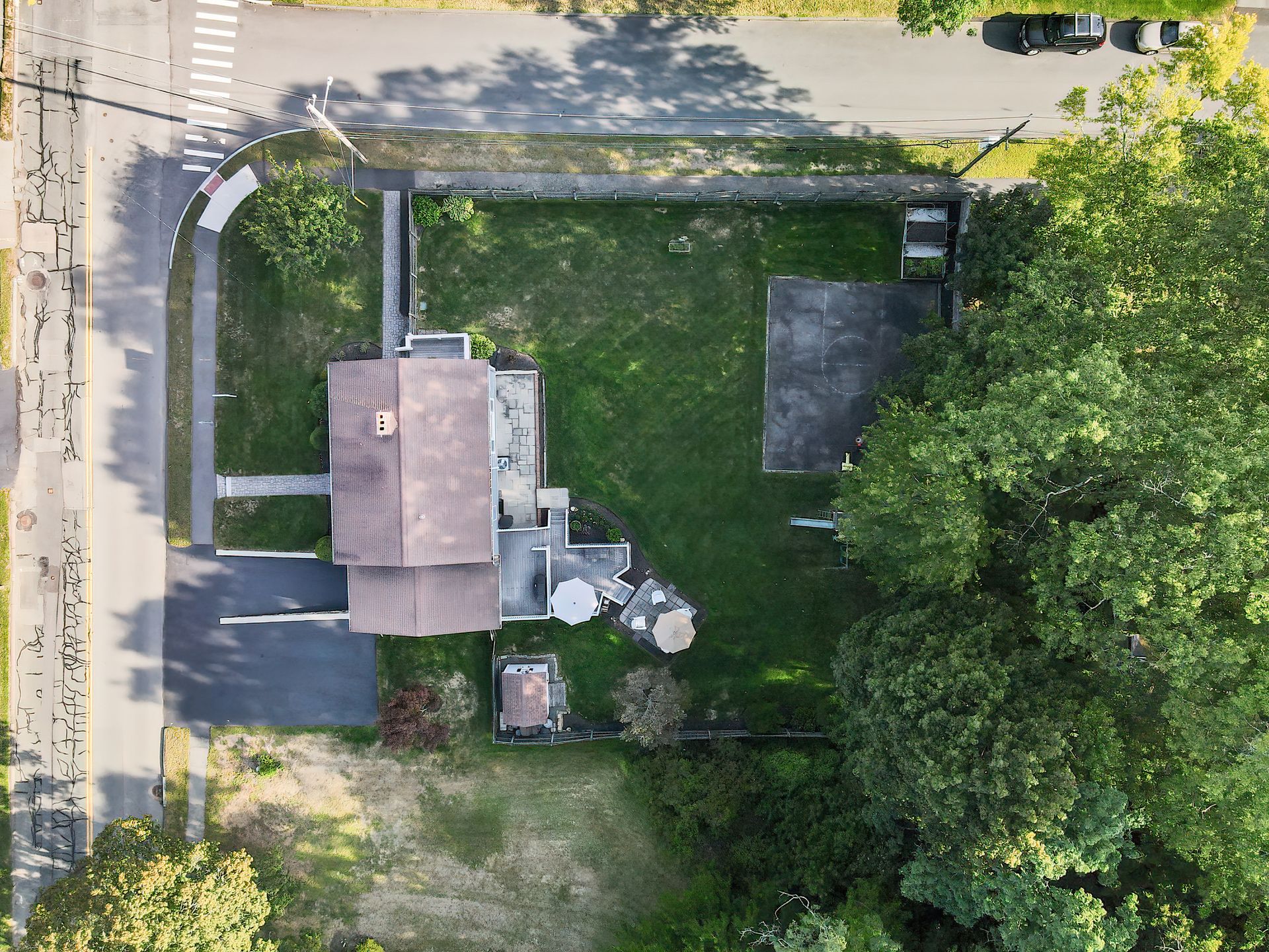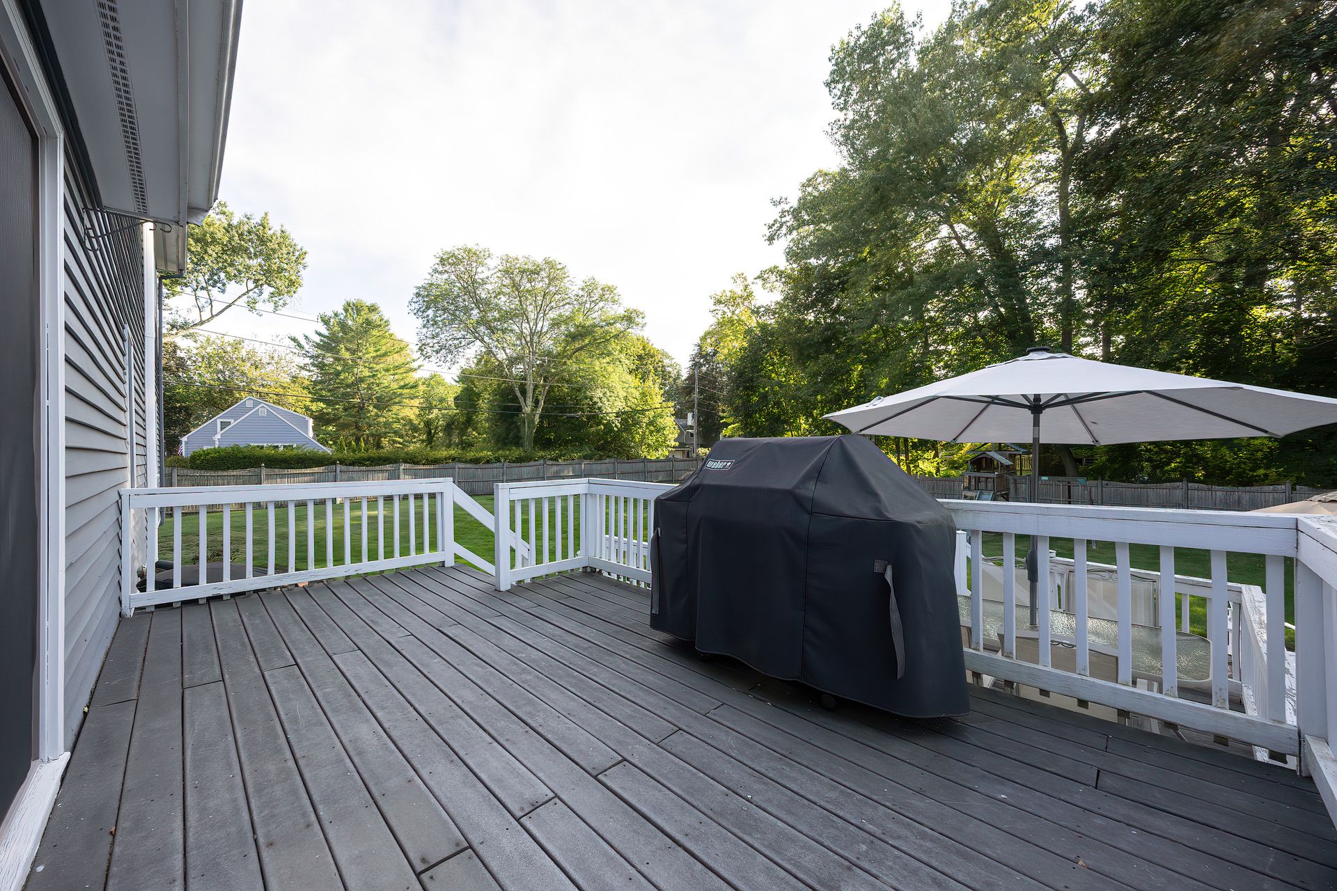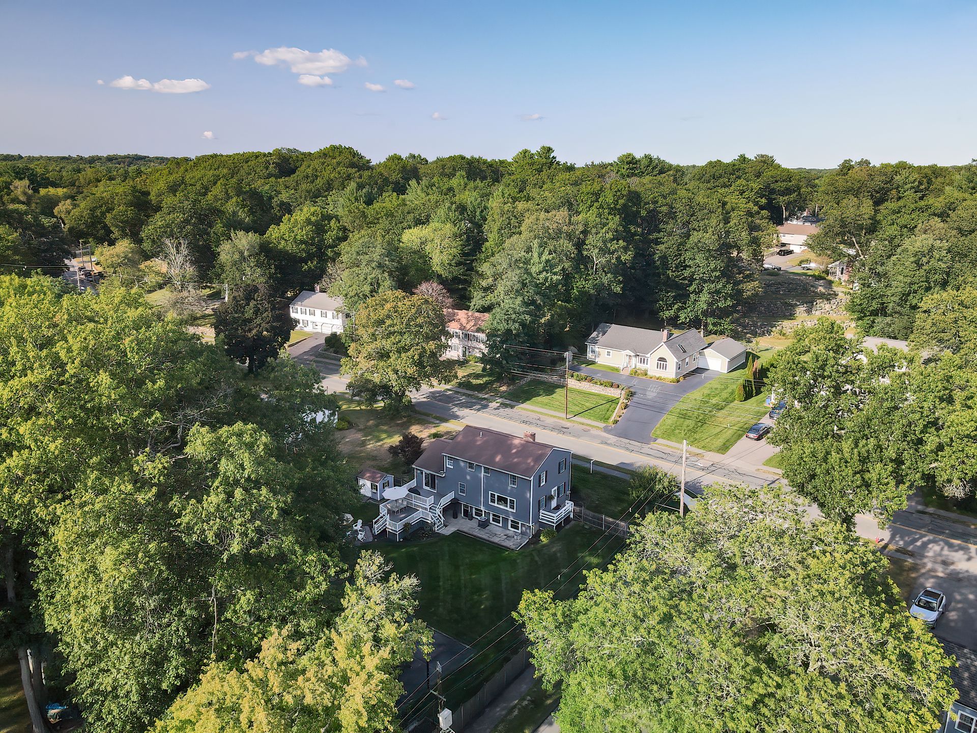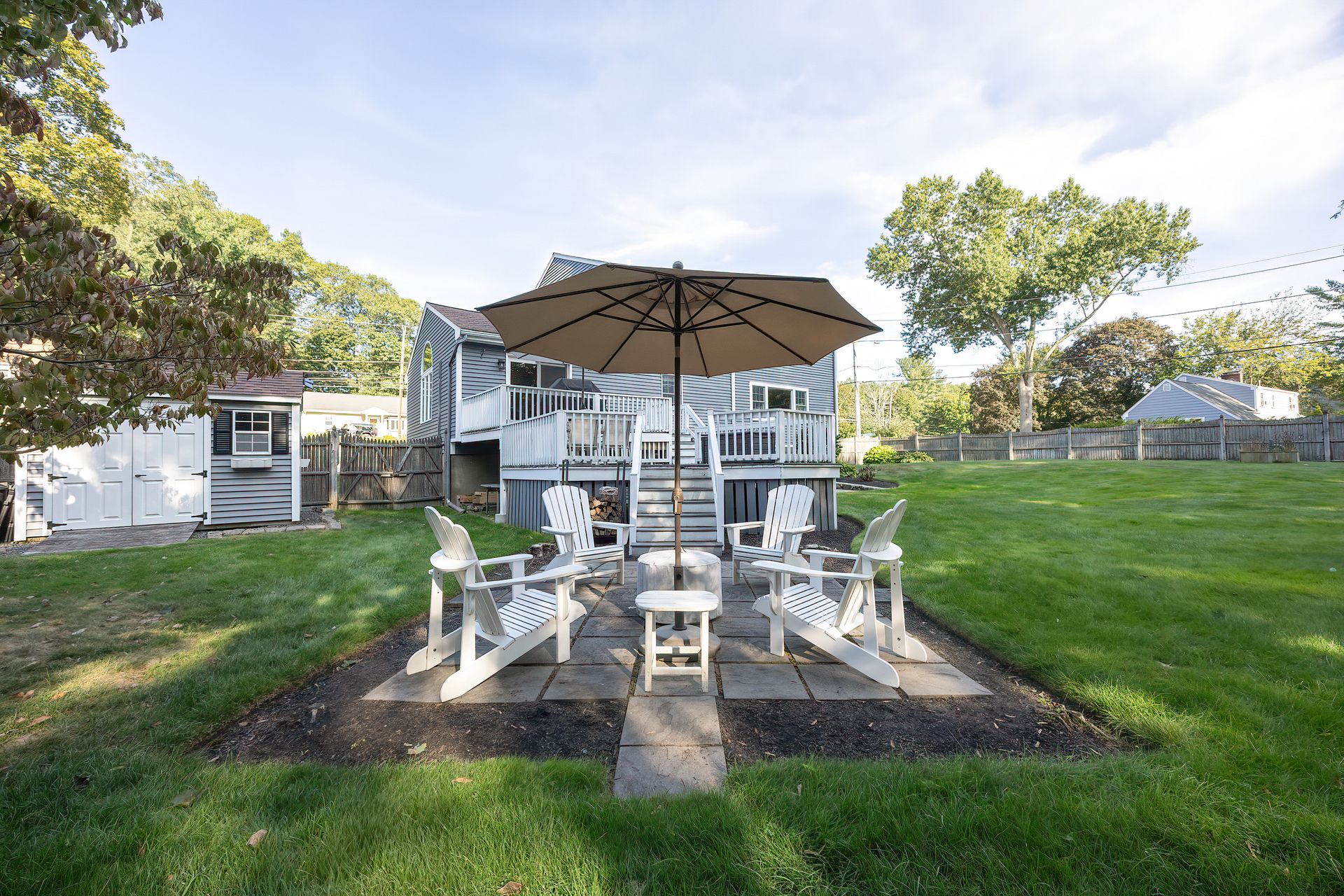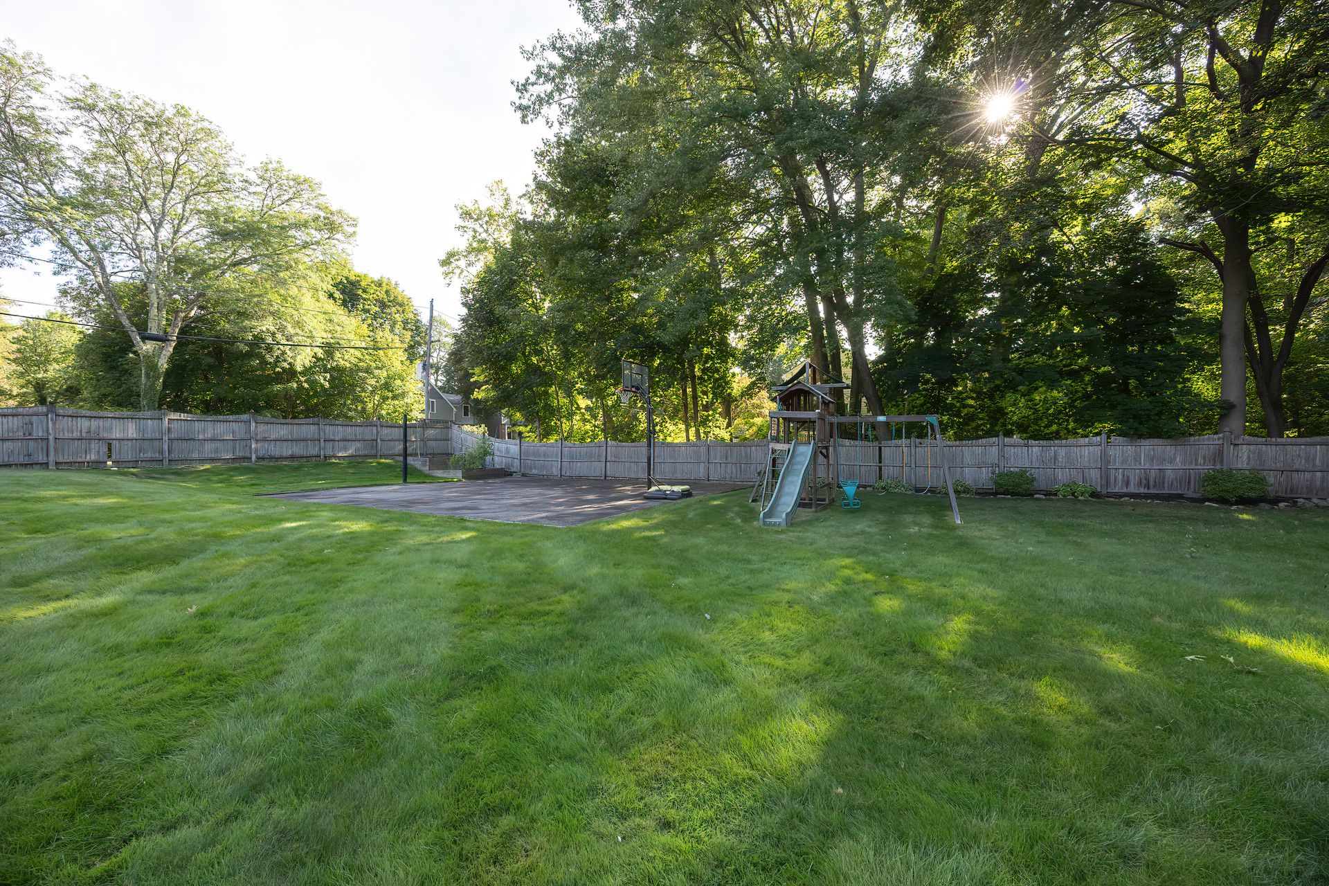 Nestled on a spacious corner lot, this charming three-bedroom Colonial offers an exceptional blend of classic design and modern amenities. The fully fenced yard is a private retreat featuring a deck, patio, shed and sport court—perfect for outdoor entertaining and recreation. Inside, the first floor boasts a well-appointed kitchen with gas cooking, granite countertops and an inviting eat-in area. The fireplaced living room flows seamlessly into the dining area, while a large vaulted-ceiling family room with sliders opens directly to the deck and yard, creating a bright and airy gathering space. A convenient half bath with laundry completes the main level. Upstairs, you'll find three generously sized bedrooms and a full bath with double sinks and a shower/tub combo. The spacious primary suite includes an ensuite bathroom and a sunlit walk-in closet with windows. The finished lower level offers versatile space ideal for a playroom, home office, or media room, with walkout access to the patio and yard, an additional half bath and a one-car garage. This home combines timeless appeal with thoughtful updates—ready to welcome its next owner.