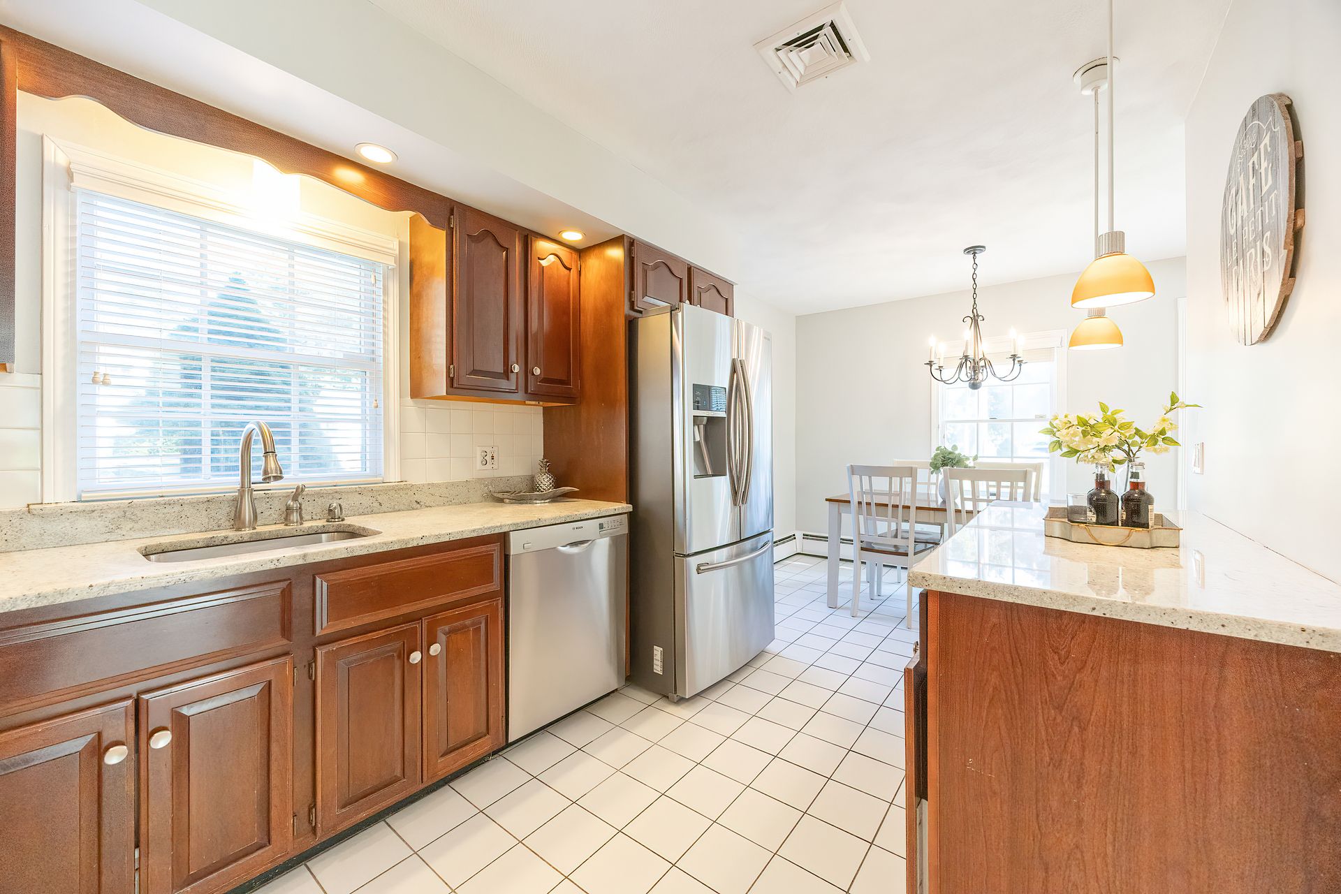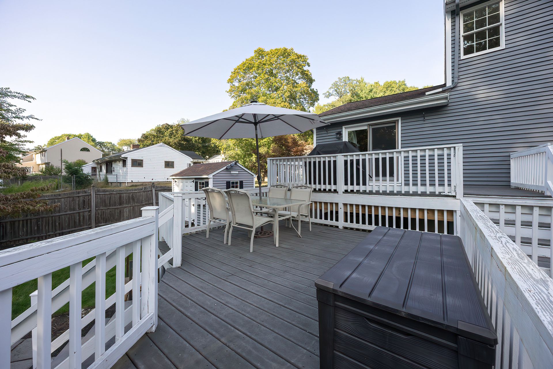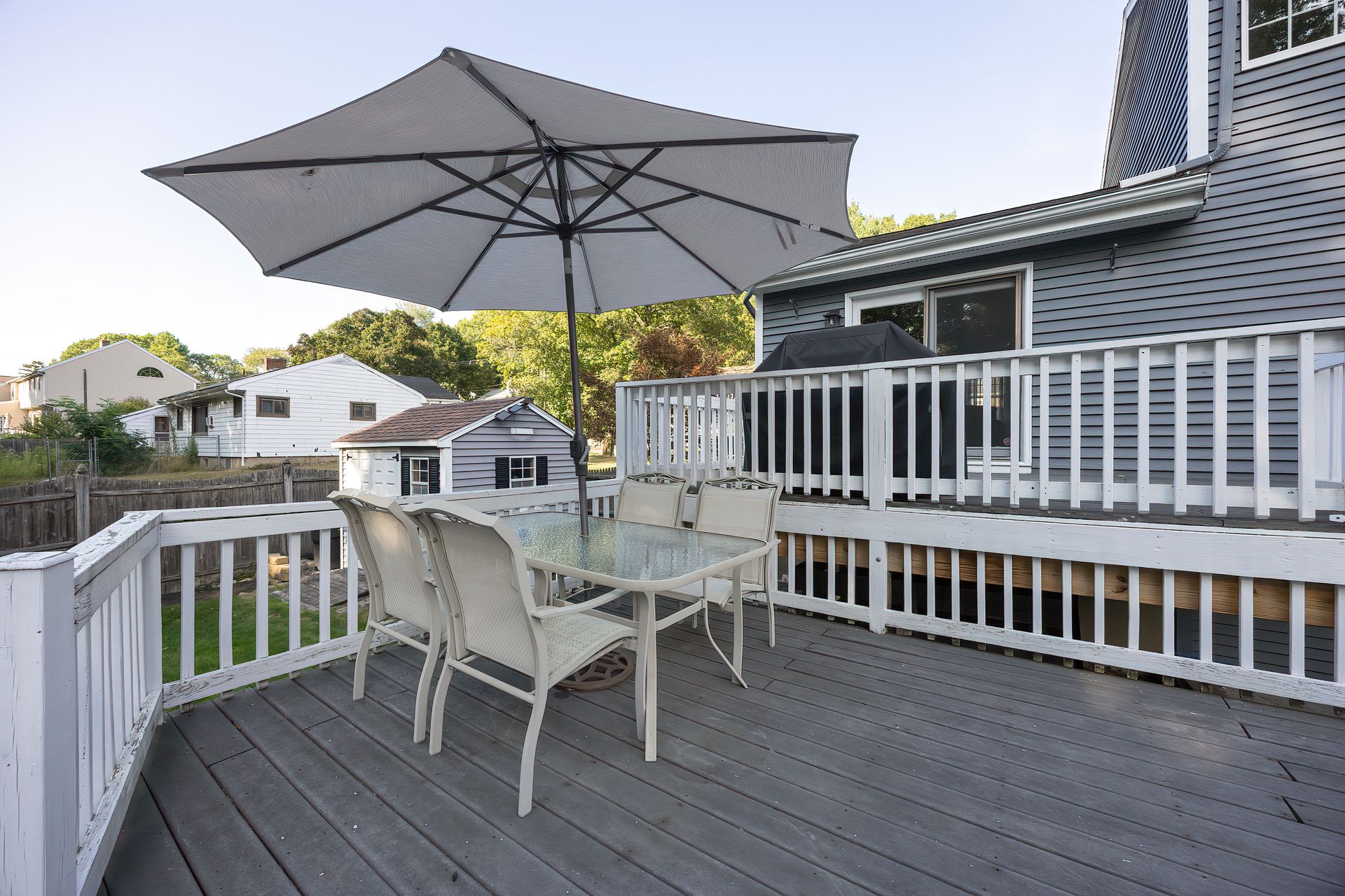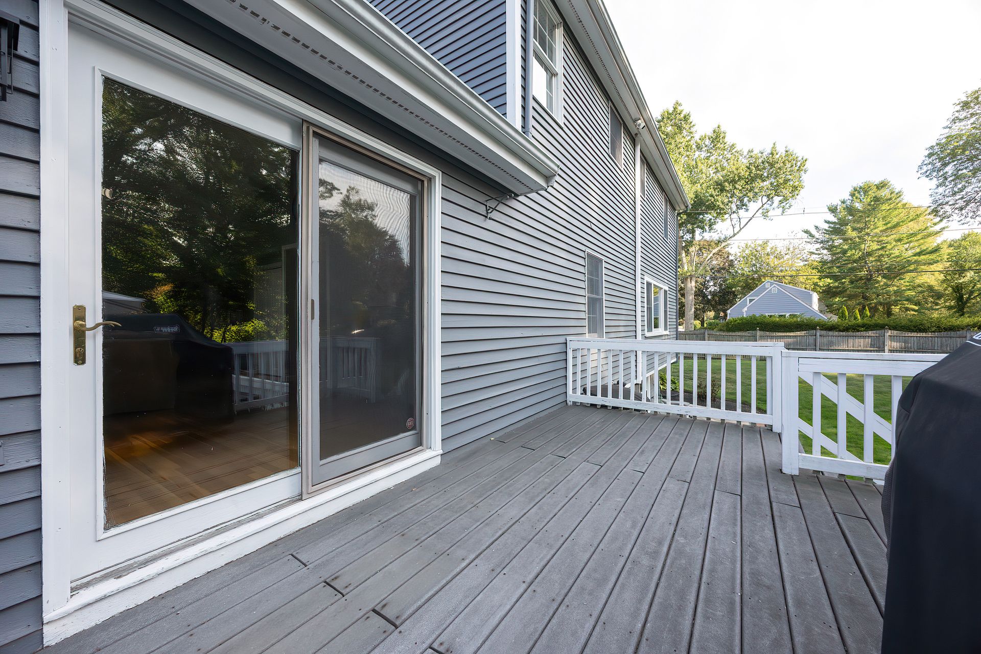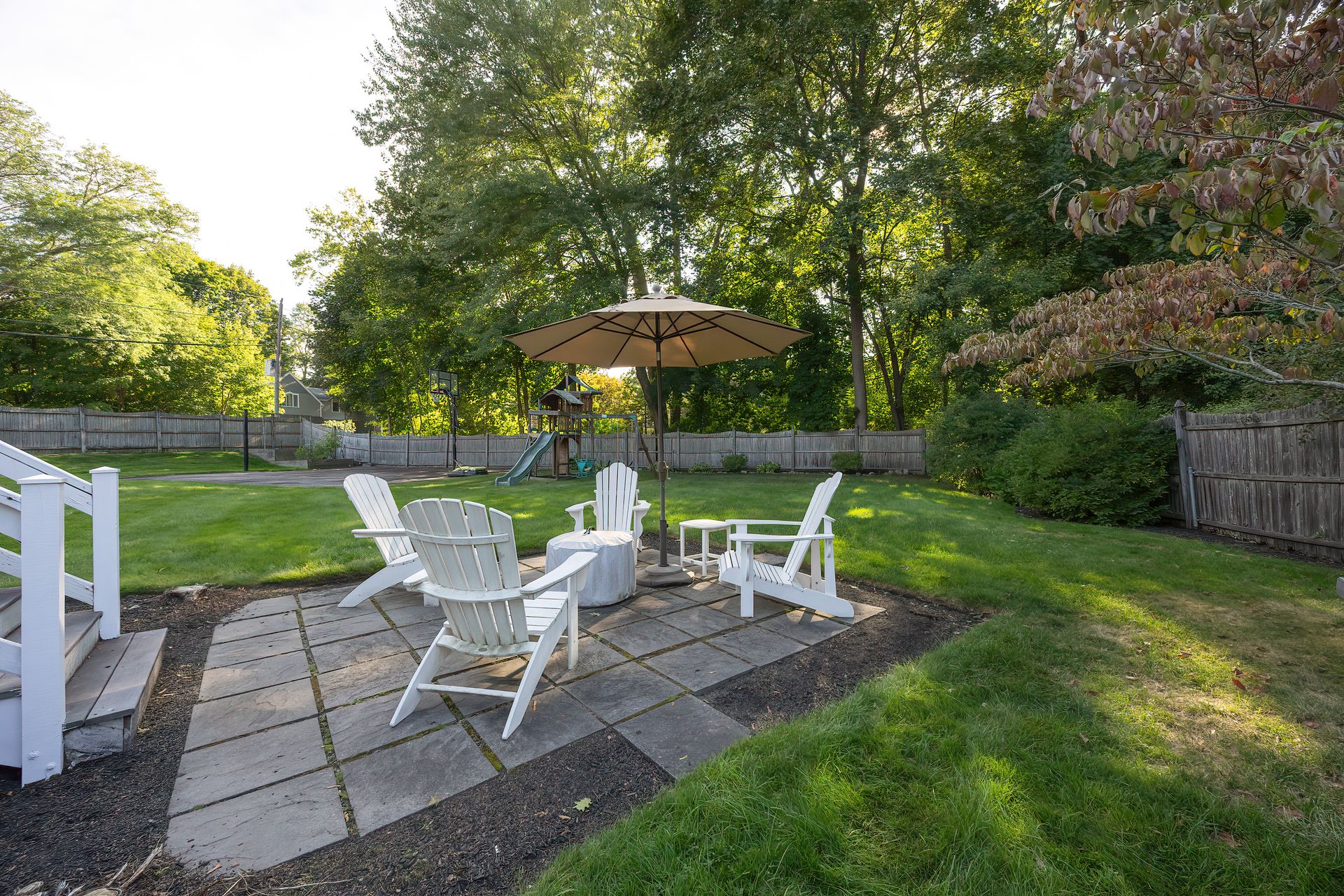 Nestled on a spacious corner lot, this charming three-bedroom Colonial offers an exceptional blend of classic design and modern amenities. The fully fenced yard is a private retreat featuring a deck, patio, shed and sport court—perfect for outdoor entertaining and recreation. Inside, the first floor boasts a well-appointed kitchen with gas cooking, granite countertops and an inviting eat-in area. The fireplaced living room flows seamlessly into the dining area, while a large vaulted-ceiling family room with sliders opens directly to the deck and yard, creating a bright and airy gathering space. A convenient half bath with laundry completes the main level. Upstairs, you'll find three generously sized bedrooms and a full bath with double sinks and a shower/tub combo. The spacious primary suite includes an ensuite bathroom and a sunlit walk-in closet with windows. The finished lower level offers versatile space ideal for a playroom, home office, or media room, with walkout access to the patio and yard, an additional half bath and a one-car garage. This home combines timeless appeal with thoughtful updates—ready to welcome its next owner.