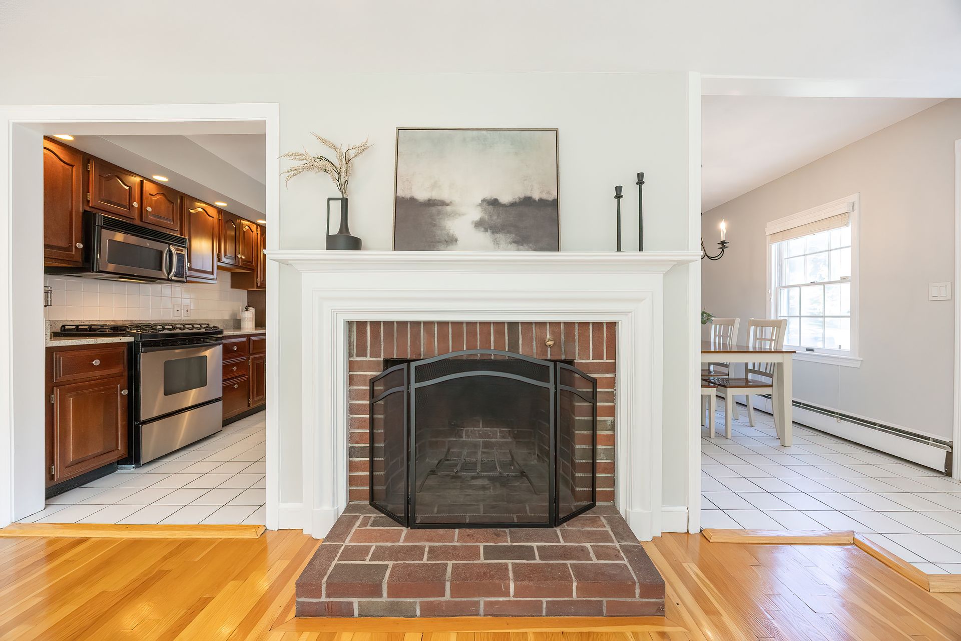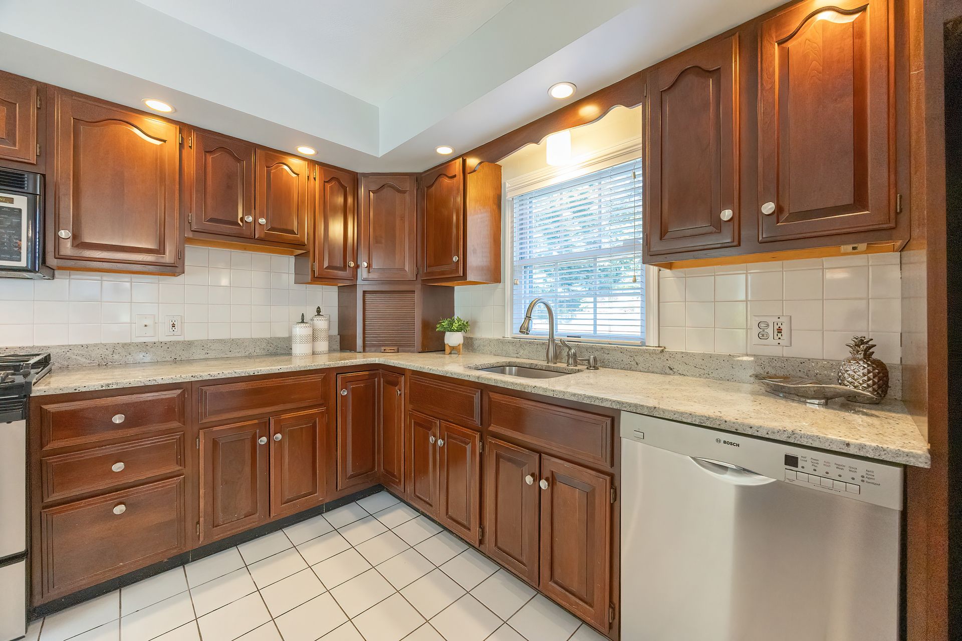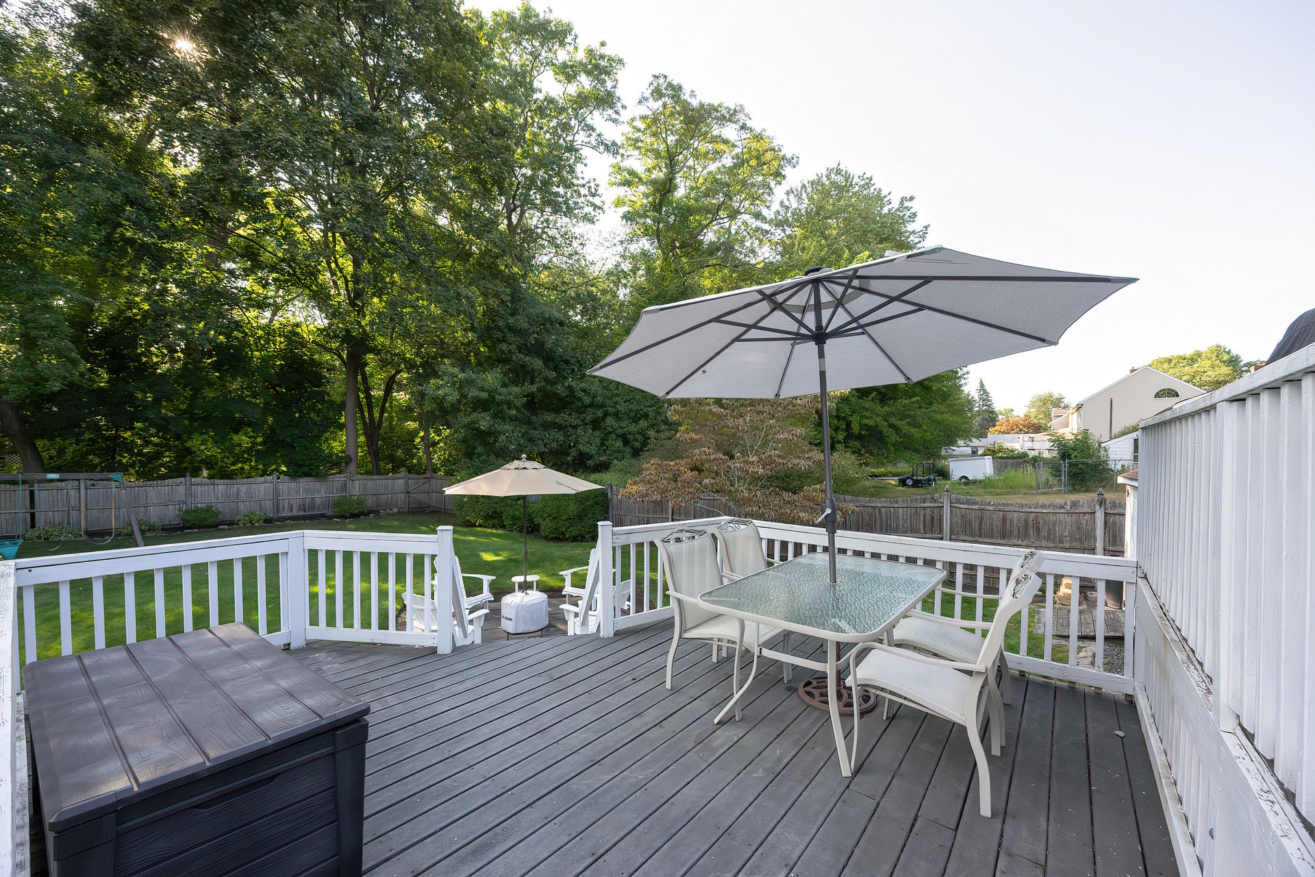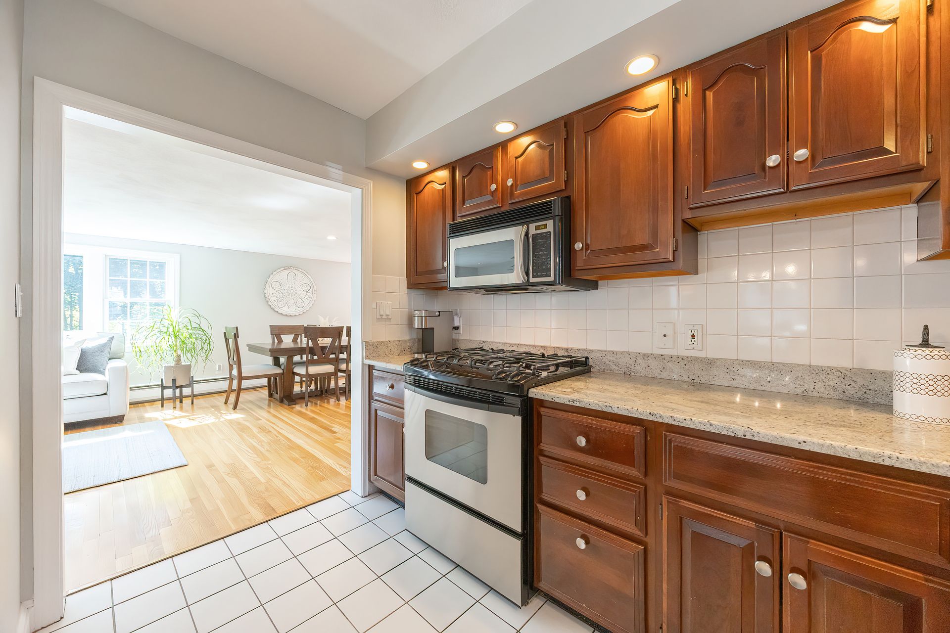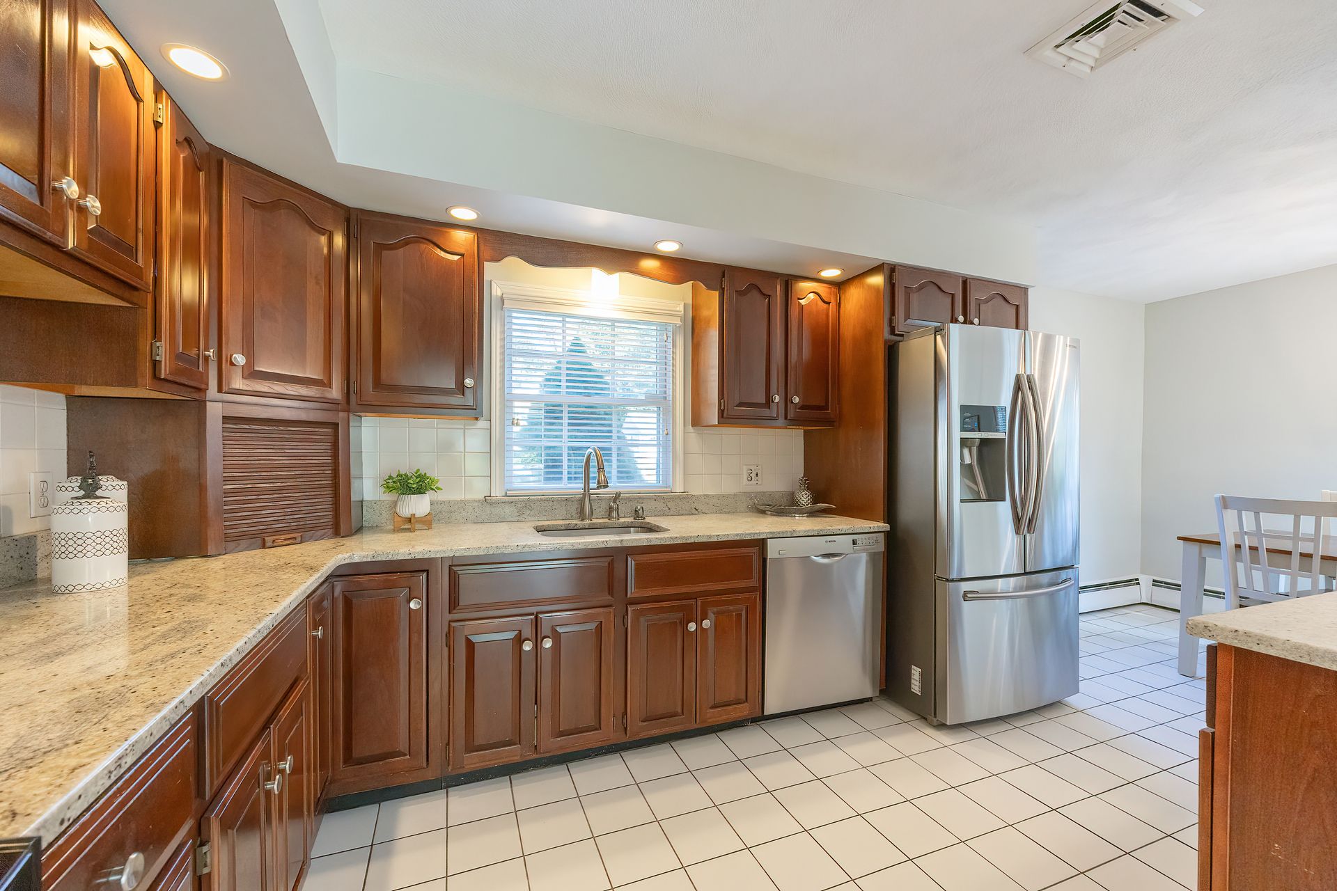 Nestled on a spacious corner lot, this charming three-bedroom Colonial offers an exceptional blend of classic design and modern amenities. The fully fenced yard is a private retreat featuring a deck, patio, shed and sport court—perfect for outdoor entertaining and recreation. Inside, the first floor boasts a well-appointed kitchen with gas cooking, granite countertops and an inviting eat-in area. The fireplaced living room flows seamlessly into the dining area, while a large vaulted-ceiling family room with sliders opens directly to the deck and yard, creating a bright and airy gathering space. A convenient half bath with laundry completes the main level. Upstairs, you'll find three generously sized bedrooms and a full bath with double sinks and a shower/tub combo. The spacious primary suite includes an ensuite bathroom and a sunlit walk-in closet with windows. The finished lower level offers versatile space ideal for a playroom, home office, or media room, with walkout access to the patio and yard, an additional half bath and a one-car garage. This home combines timeless appeal with thoughtful updates—ready to welcome its next owner.
