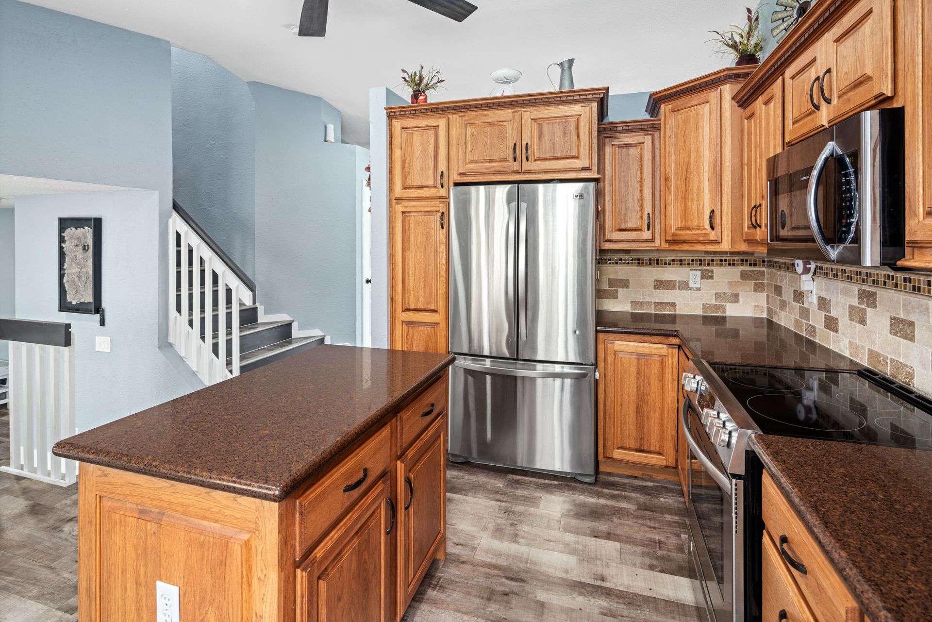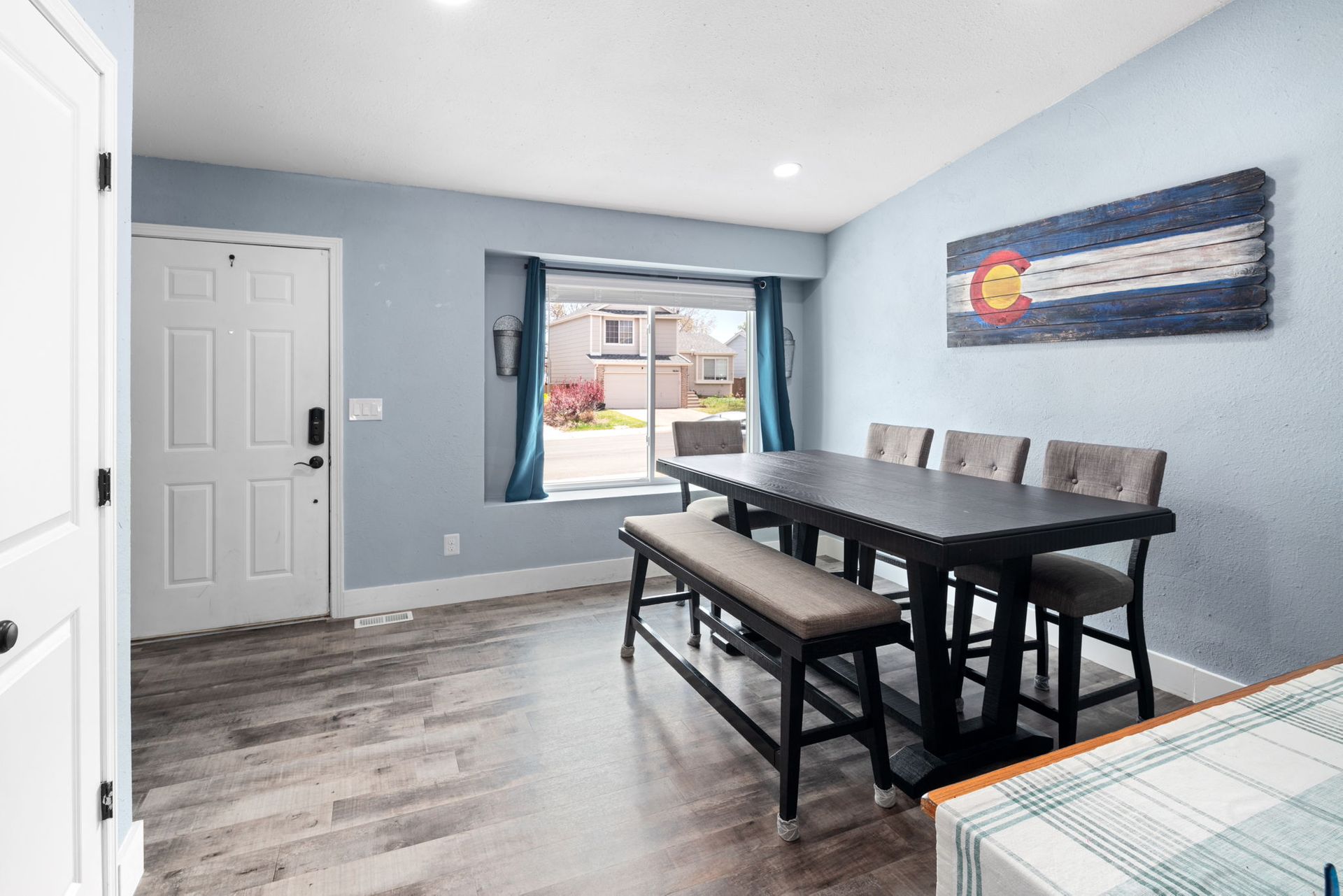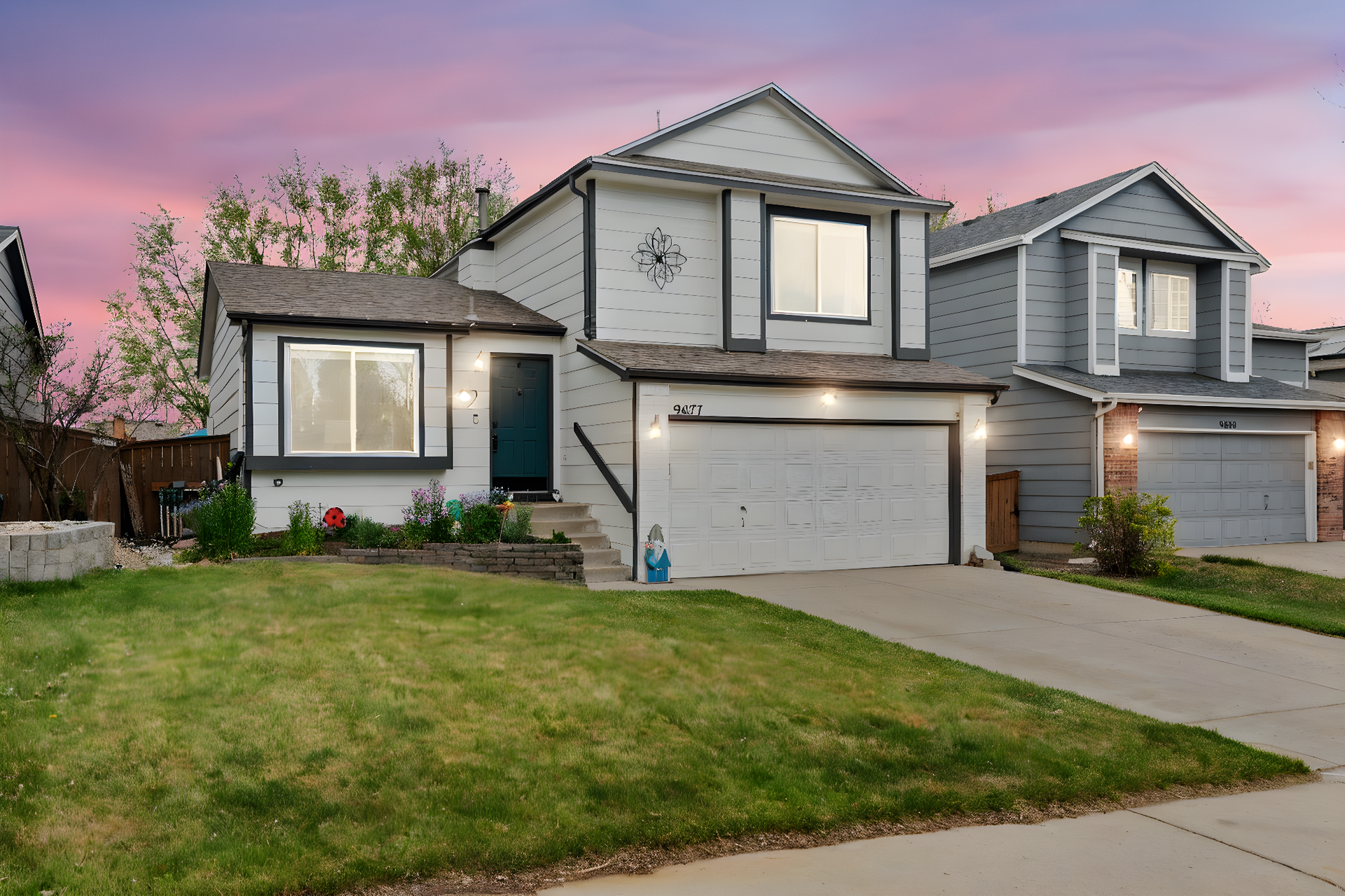 Welcome home to this beautifully maintained residence in coveted Westridge, Highlands Ranch! This bright and open 3-bedroom, 2-bathroom 2-car attached garage has much to offer. NEW windows flood the space with natural sunlight, and the new LVP flooring throughout the main floor add to the beauty of this home, enhancing the inviting atmosphere throughout. The main floor boasts an open-concept layout perfect for both a busy lifestyle and family togetherness. The open kitchen features slab granite, stone backsplash, stainless steel appliances, wood cabinets and an island, flow seamlessly into the dining areas, living room and opens onto an oversized stamped concrete patio—ideal for entertaining or enjoying the spacious, fully fenced, private backyard. Warmth and charm are added with the cozy fireplace and vaulted ceiling. Upstairs, you’ll find generously sized bedrooms soaked in natural sunlight. The primary bedroom is roomy, includes a walk in closet and a private en suite bathroom for added comfort. Unfinished basement has rough-in for future finish. Newer interior and exterior paint add to this lovely home. Ideally situated next to Westridge Rec Center and access to all 4 Highlands Ranch Rec centers included with HOA . Gyms, Pools, Parks and Miles of Trails. Easy access to Santa Fe, C-470, Hospitals, Restaurants, Shopping and Entertainment at the nearby Town Center. Short distance to popular Redstone Park, Marcy Park, Dog Park, and Highlands Ranch Golf Club.