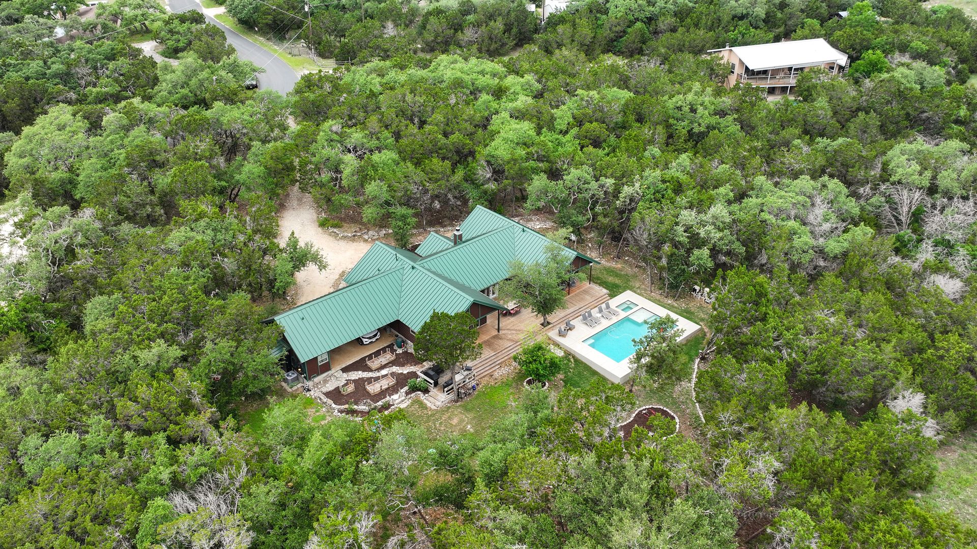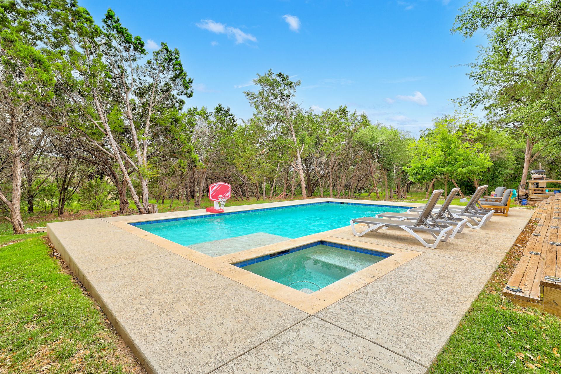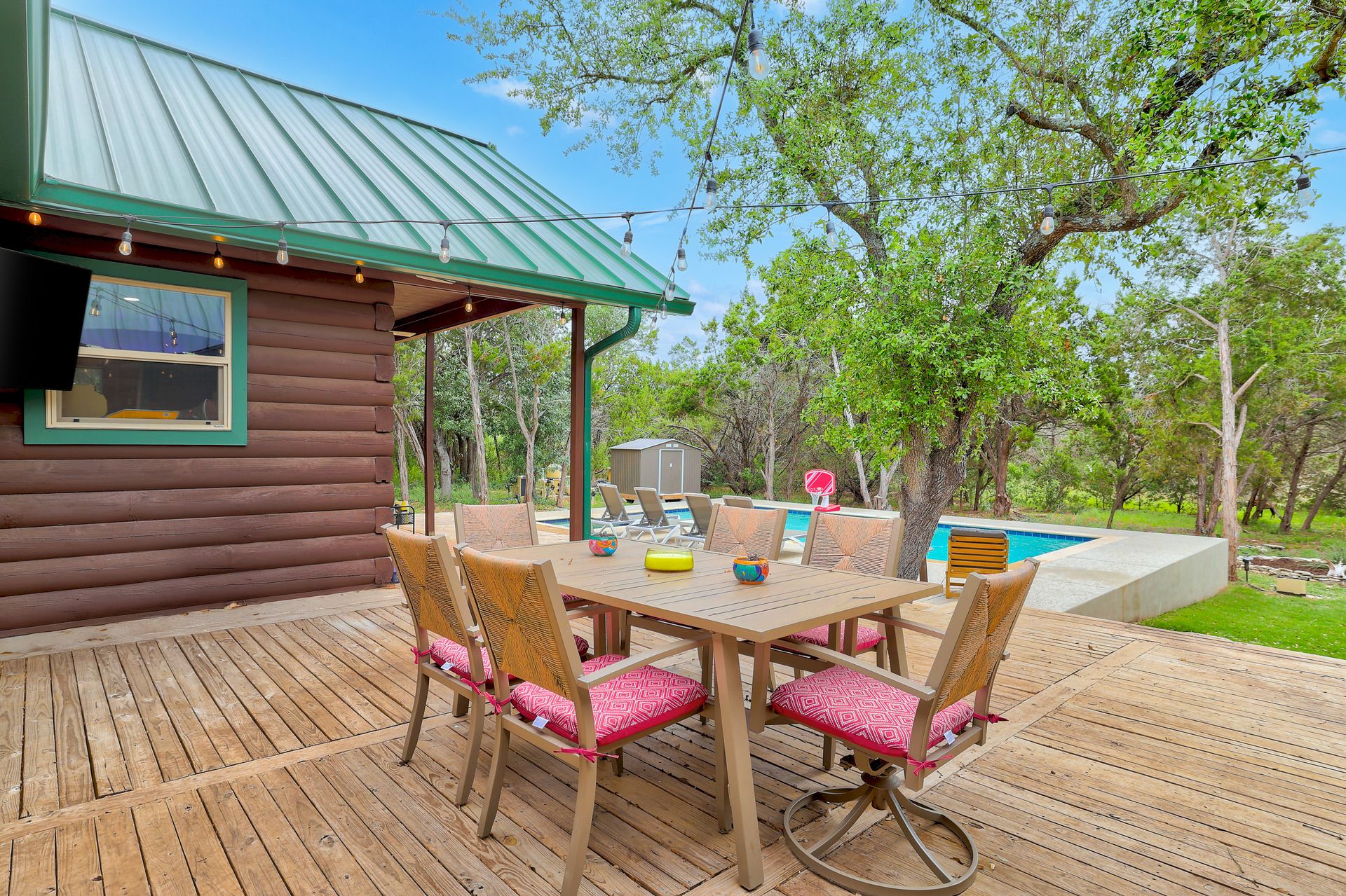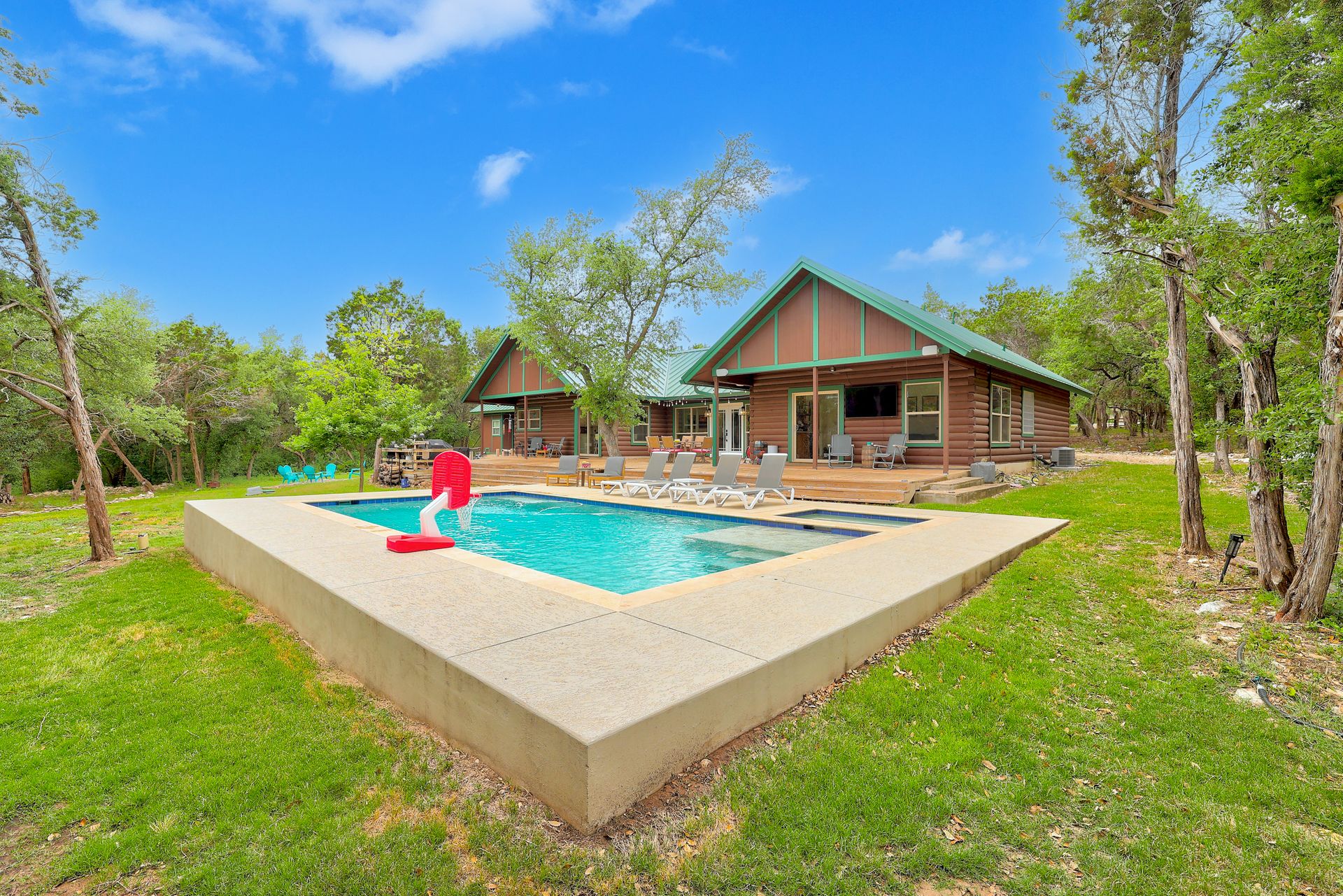 Here is an amazing opportunity for you and your pets to live harmoniously together in hill country resort style, only minutes from downtown Austin, TX it is on city water too! Find this beautiful log cabin home with a newly replaced 2024 metal roof, nestled back from a quiet county road on 2.36 acres studded with trees and wooded land backing to more open green space. Your enjoyment continues with a stunning 2023 inground pool with hot tub, yards of patio decking for outdoor living, and wonderful entertainment possibilities.