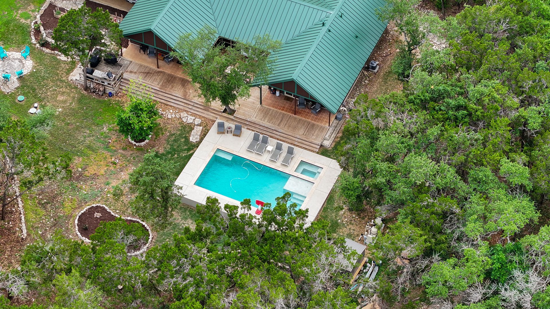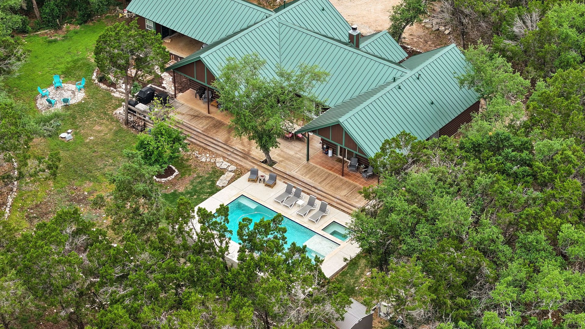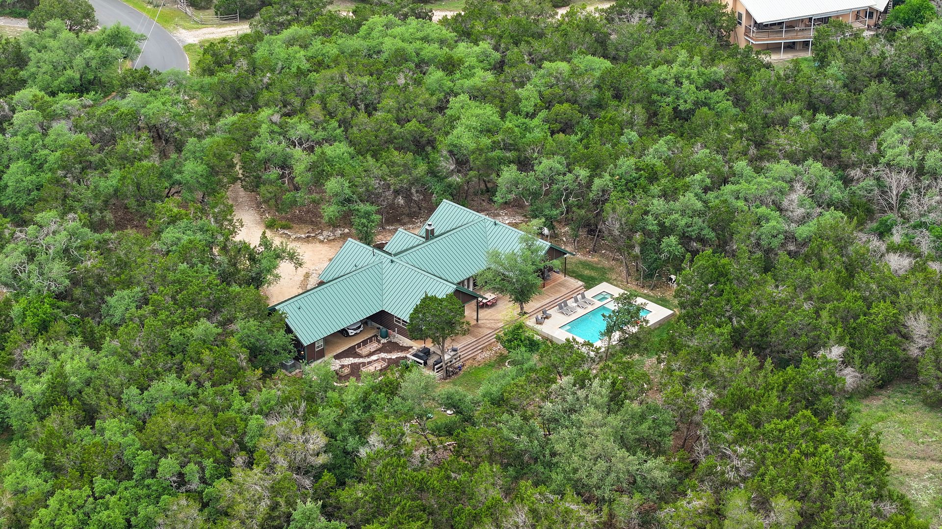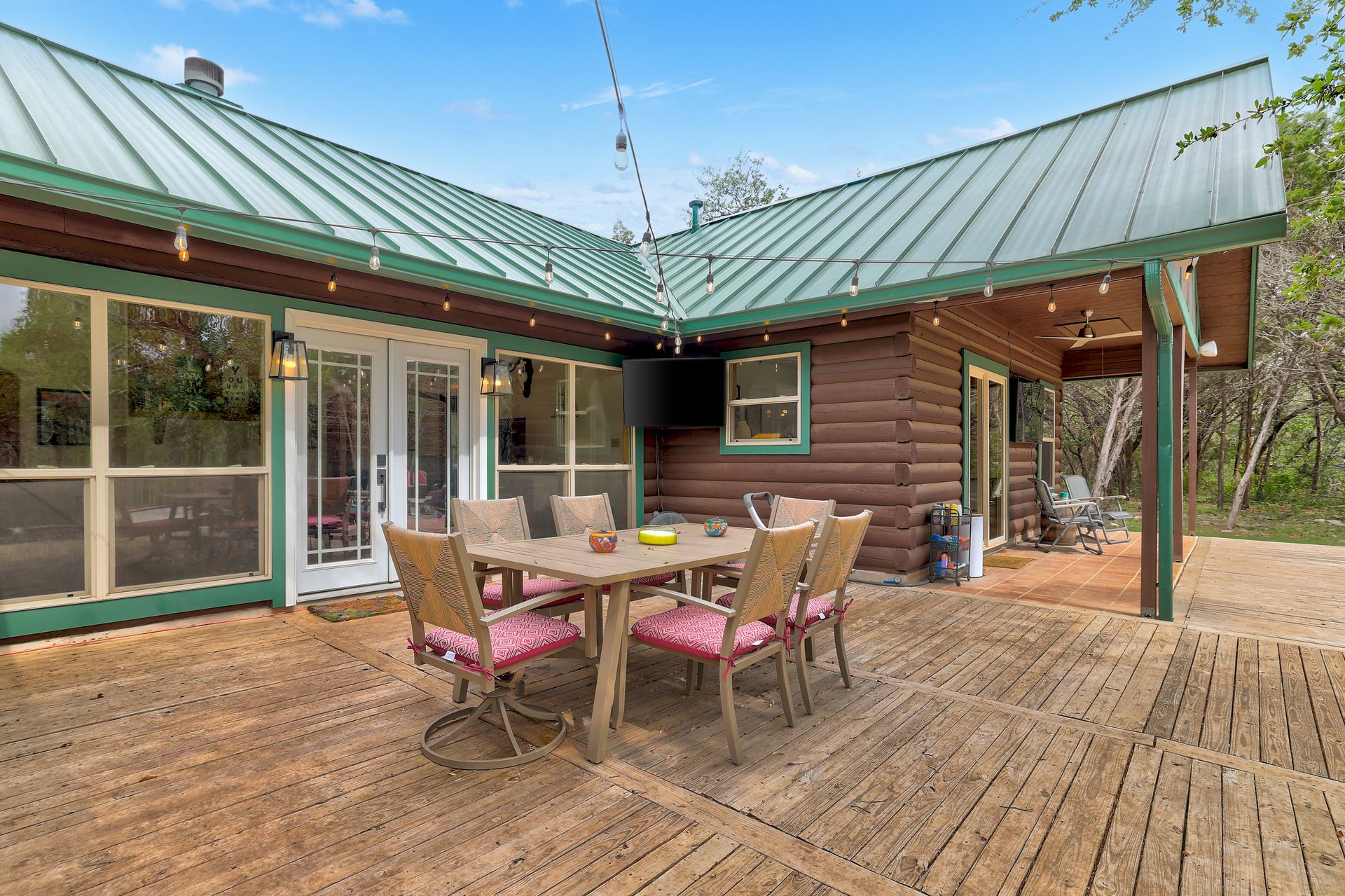 Here is an amazing opportunity for you and your pets to live harmoniously together in hill country resort style, only minutes from downtown Austin, TX it is on city water too! Find this beautiful log cabin home with a newly replaced 2024 metal roof, nestled back from a quiet county road on 2.36 acres studded with trees and wooded land backing to more open green space. Your enjoyment continues with a stunning 2023 inground pool with hot tub, yards of patio decking for outdoor living, and wonderful entertainment possibilities.