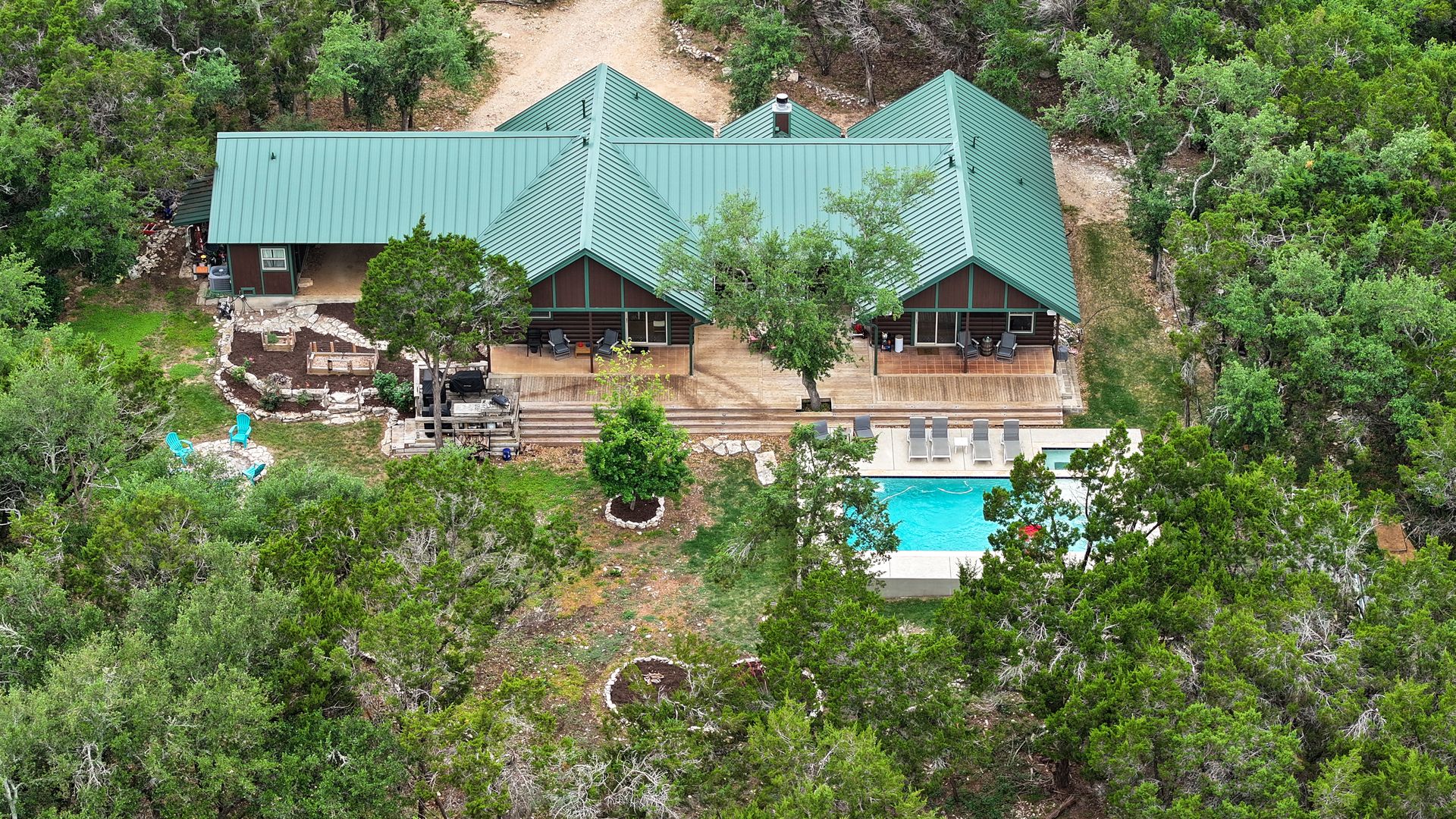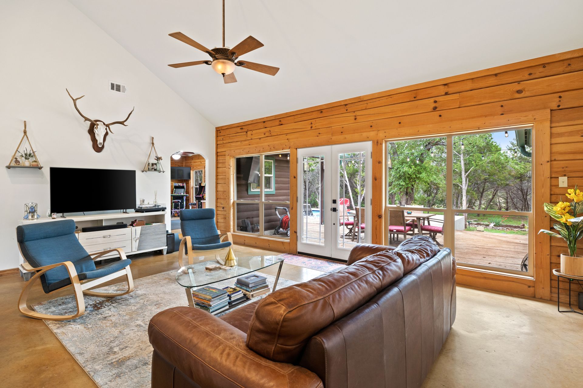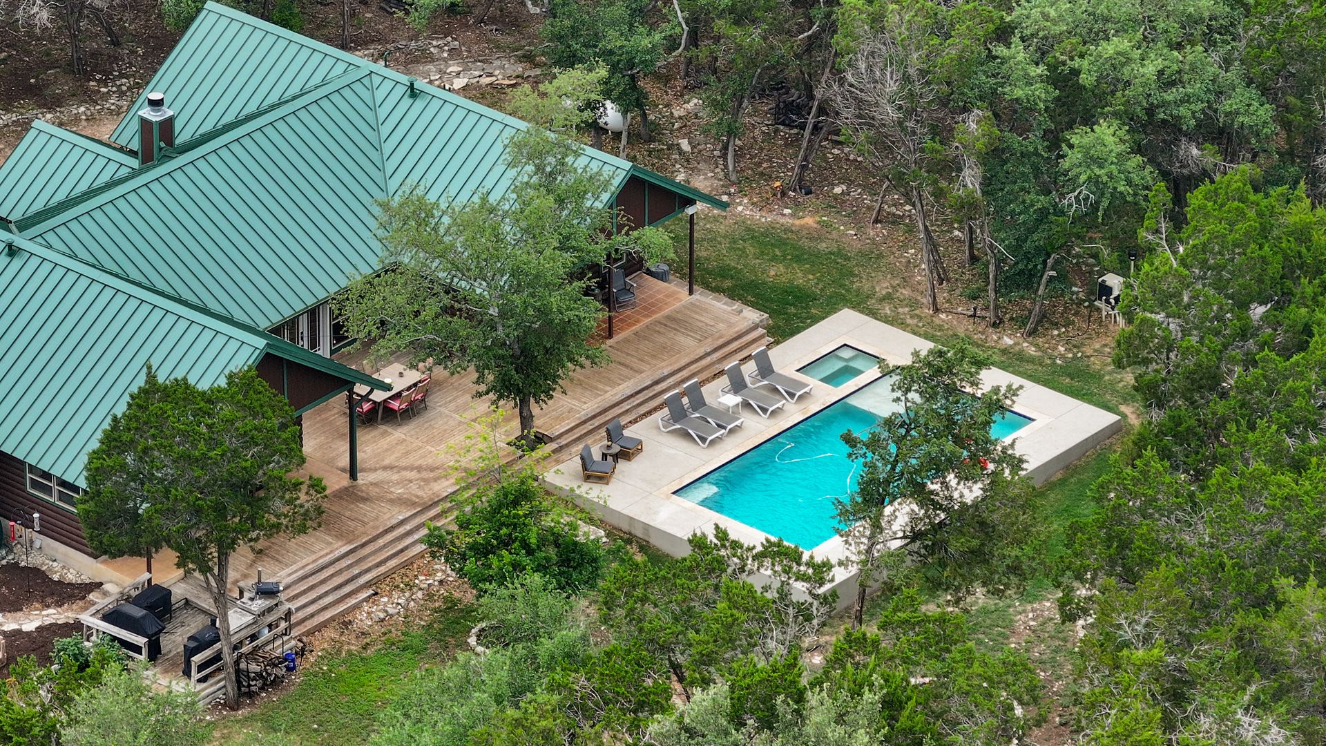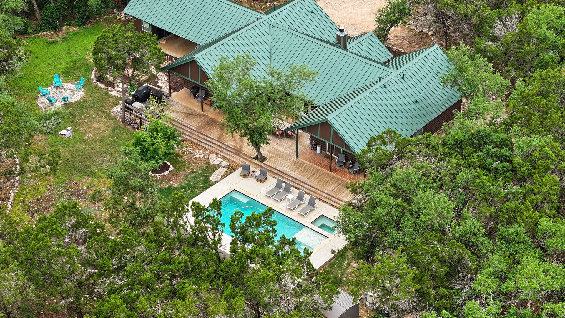 Here is an amazing opportunity for you and your pets to live harmoniously together in hill country resort style, only minutes from downtown Austin, TX it is on city water too! Find this beautiful log cabin home with a newly replaced 2024 metal roof, nestled back from a quiet county road on 2.36 acres studded with trees and wooded land backing to more open green space. Your enjoyment continues with a stunning 2023 inground pool with hot tub, yards of patio decking for outdoor living, and wonderful entertainment possibilities.