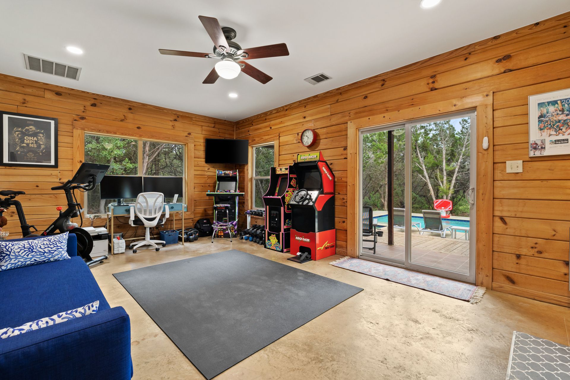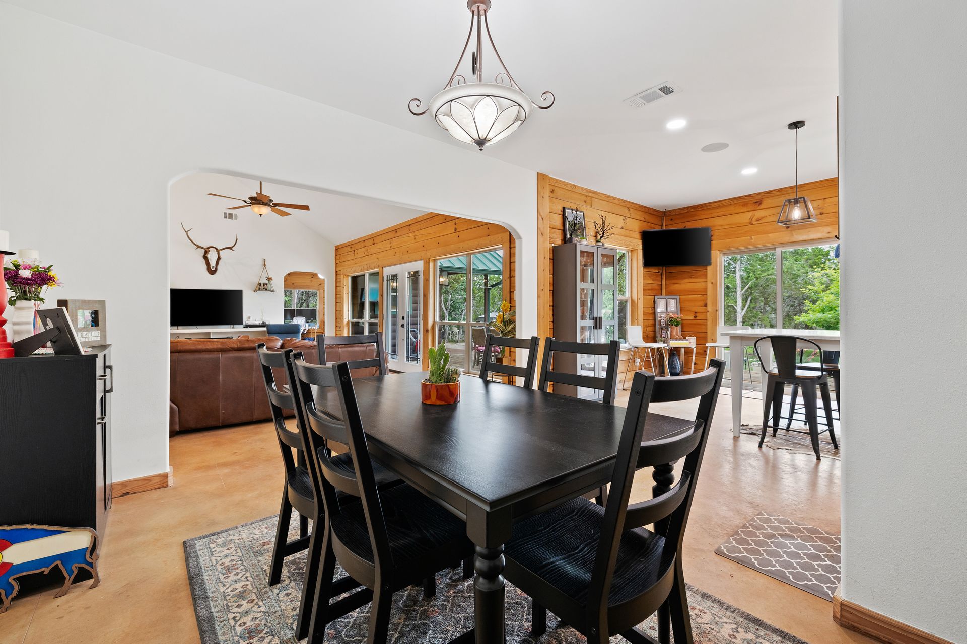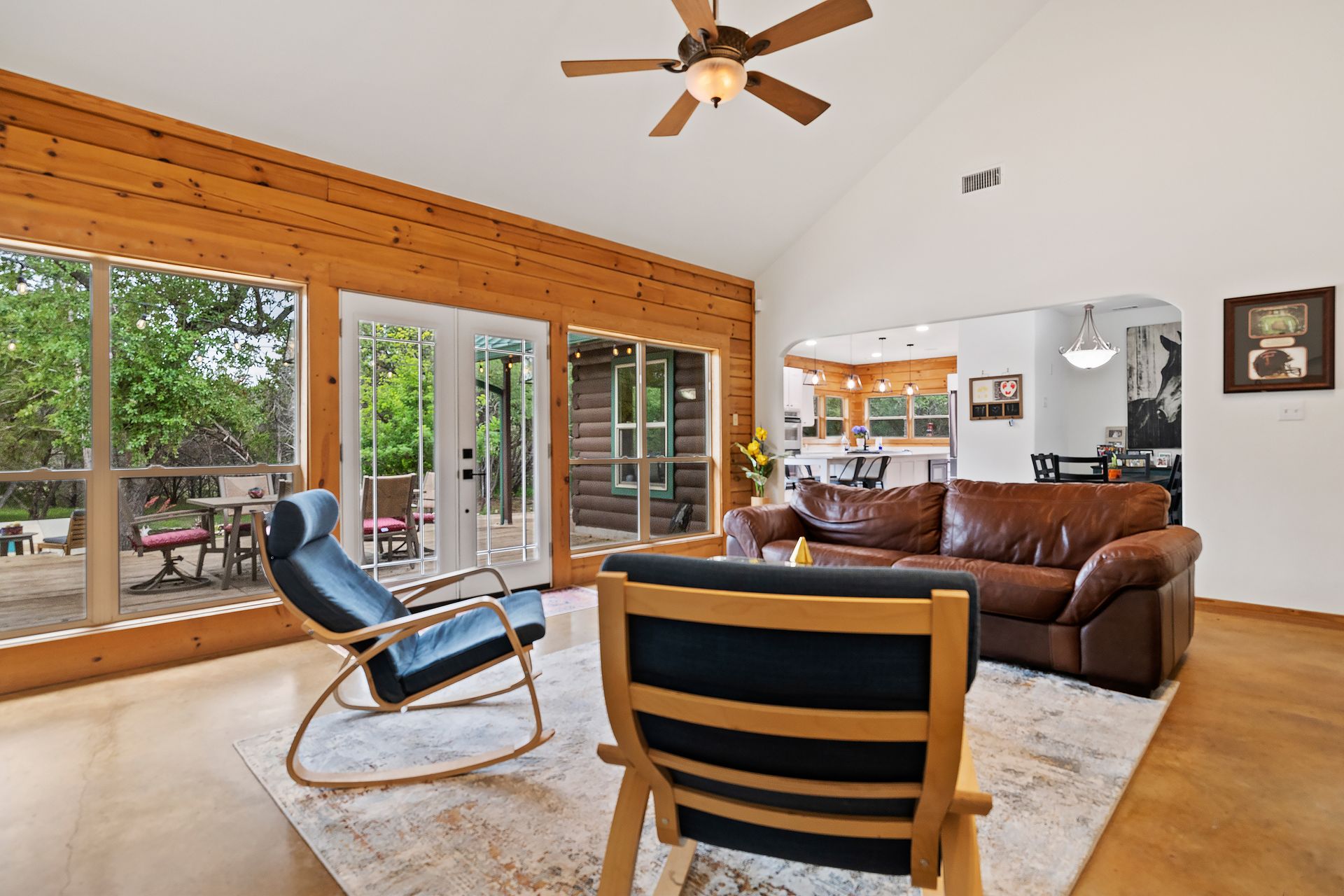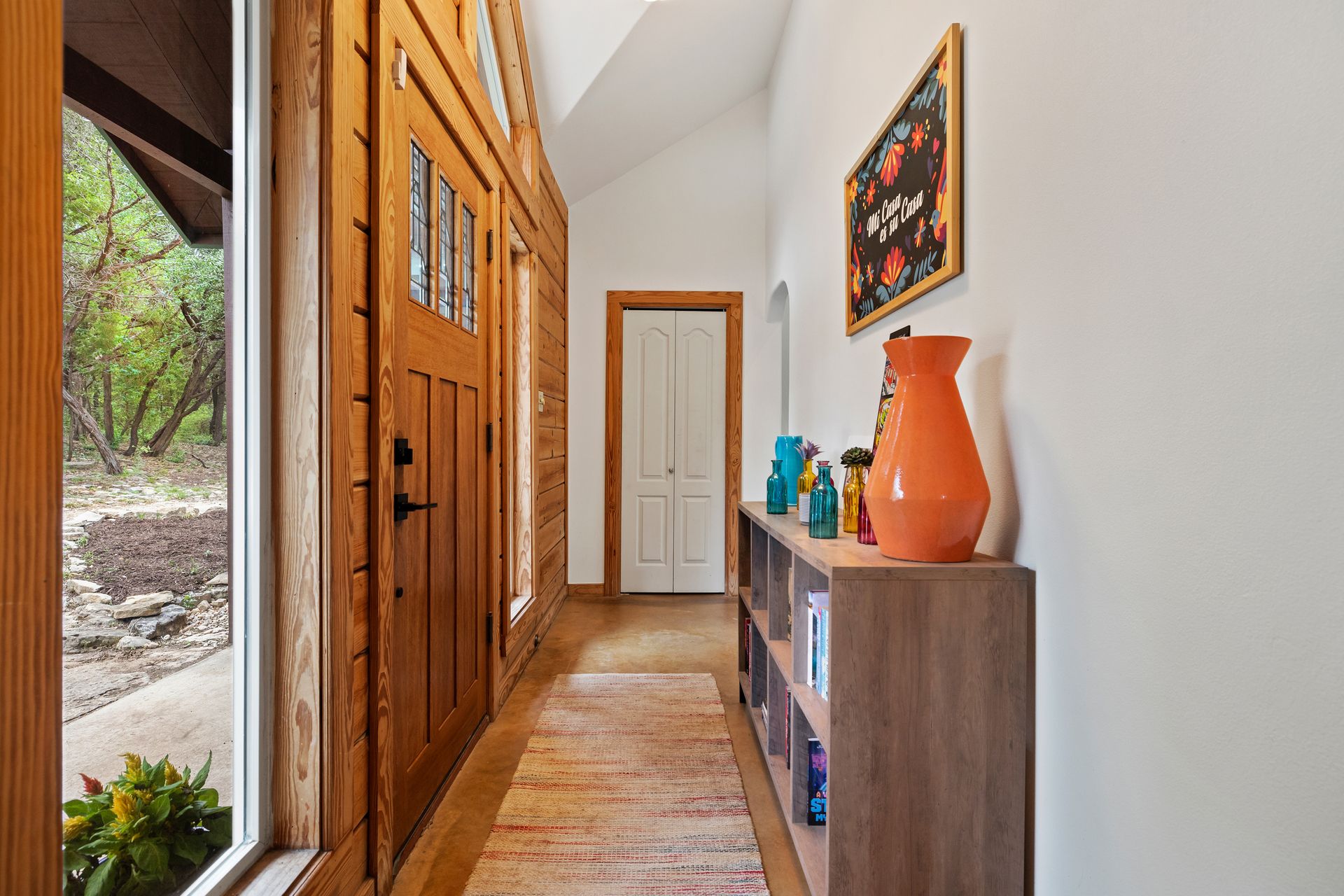 Here is an amazing opportunity for you and your pets to live harmoniously together in hill country resort style, only minutes from downtown Austin, TX it is on city water too! Find this beautiful log cabin home with a newly replaced 2024 metal roof, nestled back from a quiet county road on 2.36 acres studded with trees and wooded land backing to more open green space. Your enjoyment continues with a stunning 2023 inground pool with hot tub, yards of patio decking for outdoor living, and wonderful entertainment possibilities.