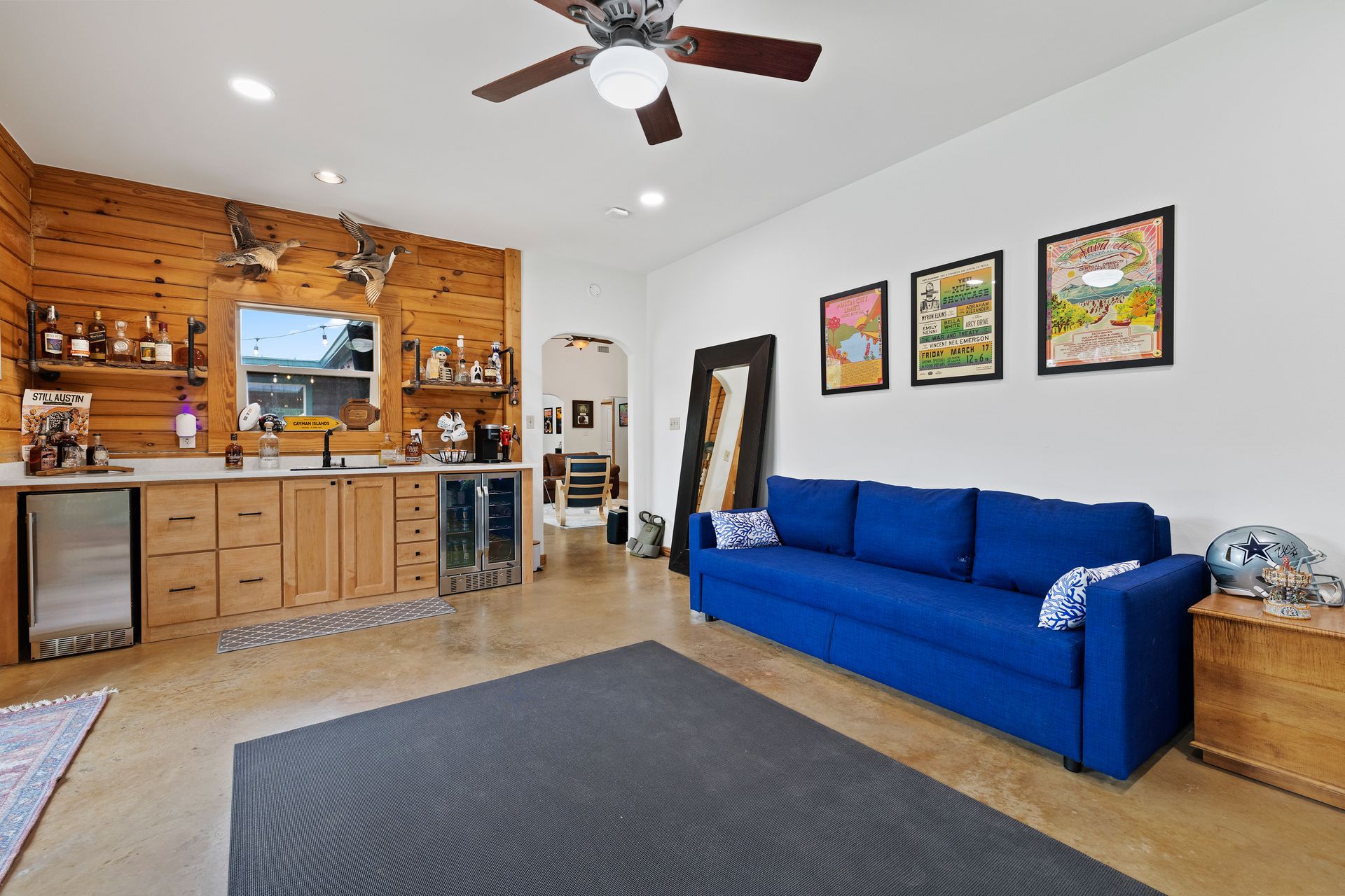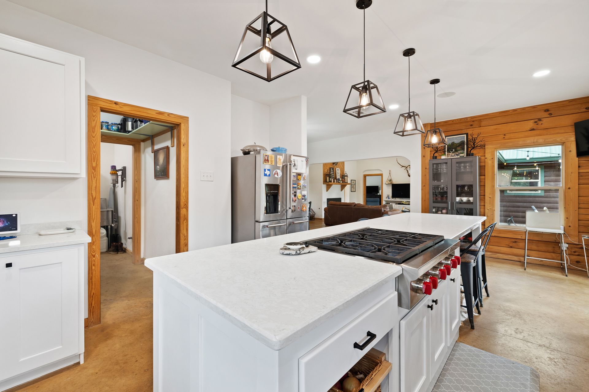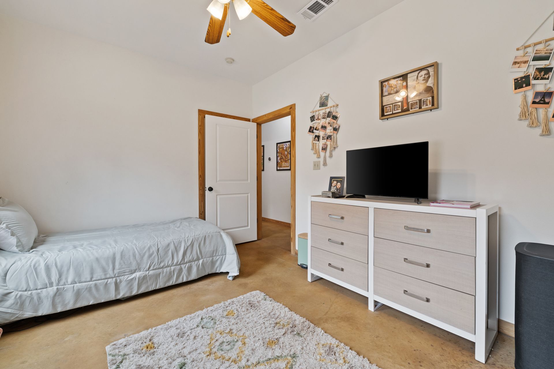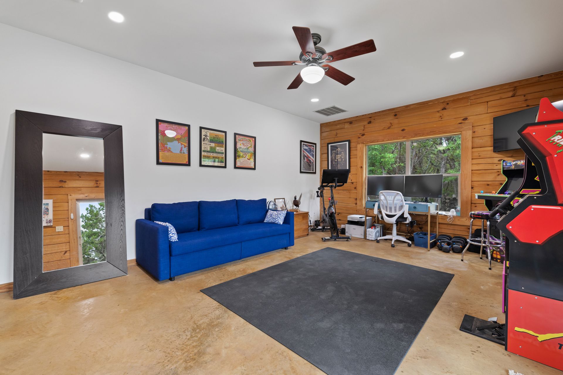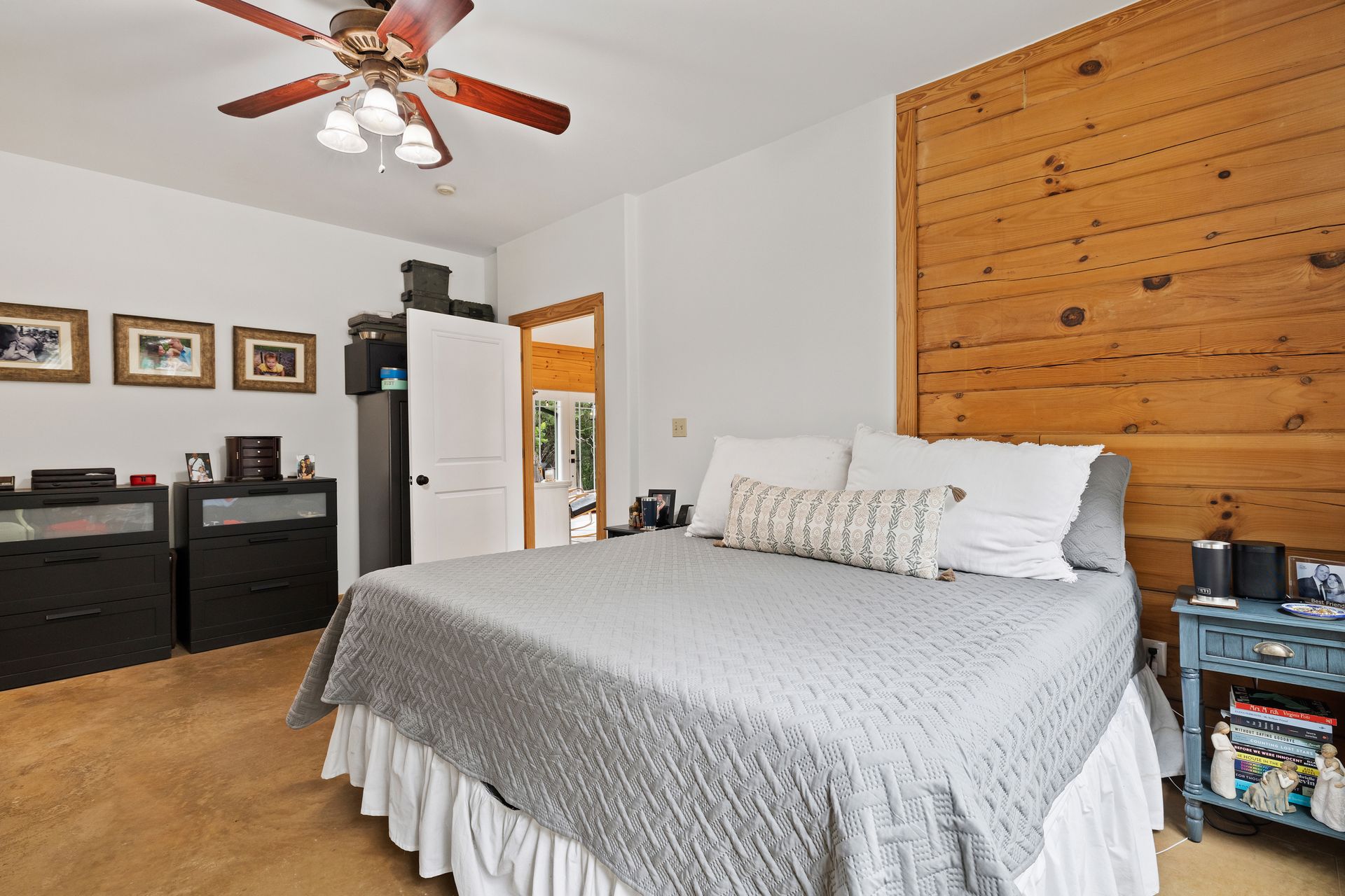 Yes, there is even more... 1.8 acres of this property have been recently professionally fenced with an automated driveway gate for the sellers' three dogs. Also, because it's in ETJ, you can bring almost any other types of critters as well. Plan to relax around the fire pit and garden all year round in the raised beds just outside the kitchen. It just gets better and better... inside the exquisite Craftsman-style front door, you’ll be taken in by the dramatic soaring ceiling with exposed wood all around the great room and a fireplace taking center stage, especially on cool Texas winter evenings.