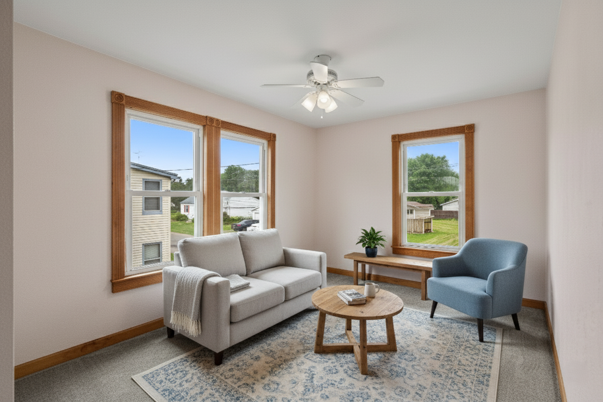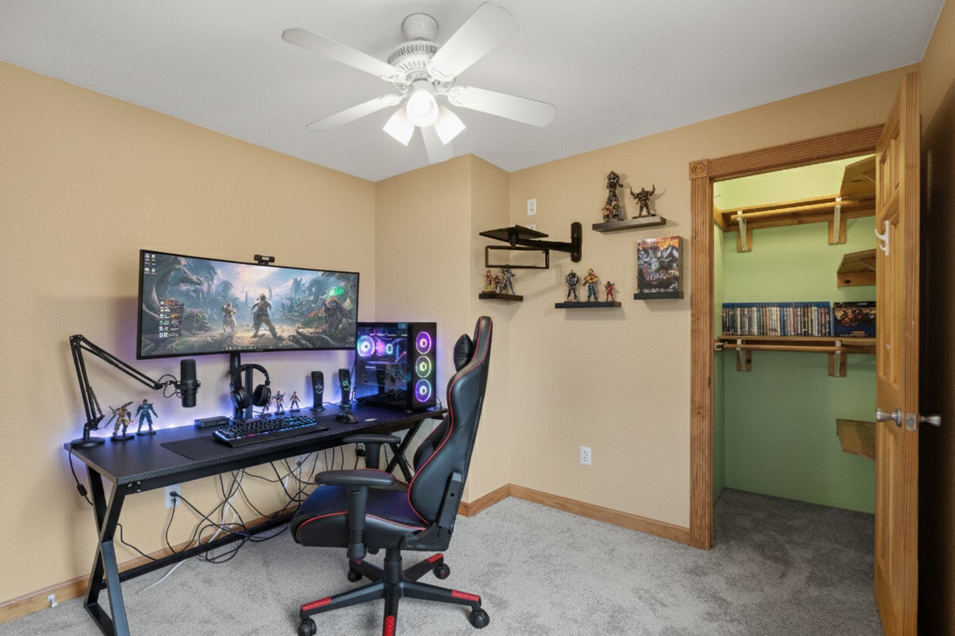 A rare find, the oversized two-car garage offers incredible flexibility for storage, hobby space, or a full workshop.