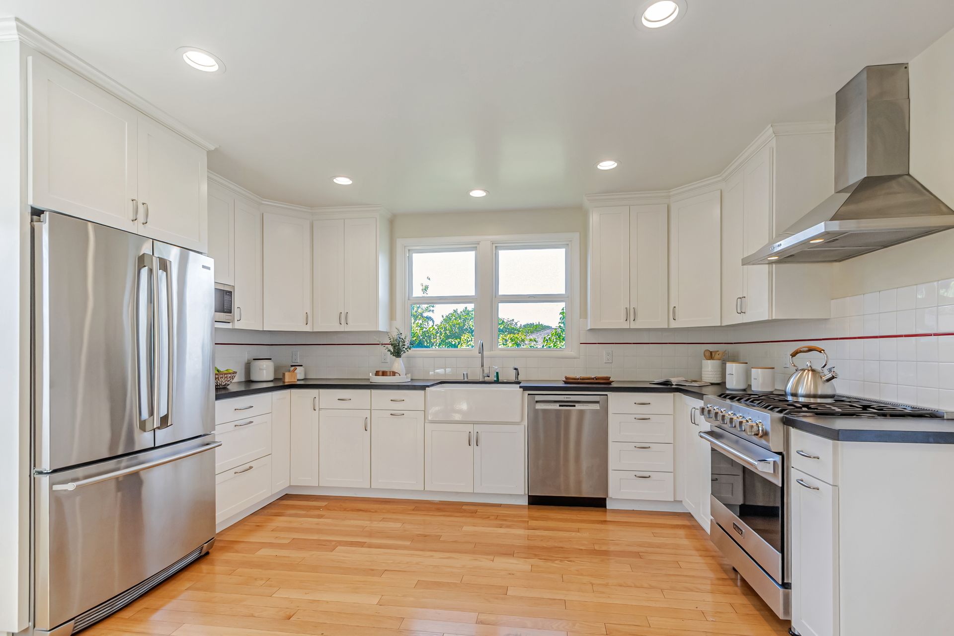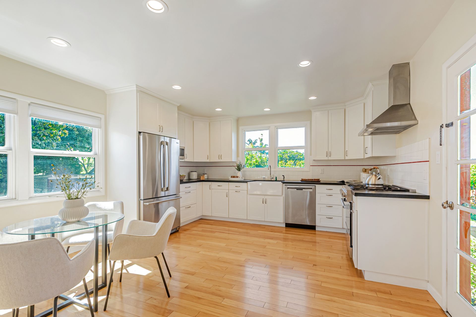 The remodeled kitchen is a chef’s dream, featuring sleek granite countertops, high-end stainless-steel appliances, and ample cabinetry for storage. Whether you’re preparing everyday meals or hosting a dinner party, this kitchen is designed to impress.