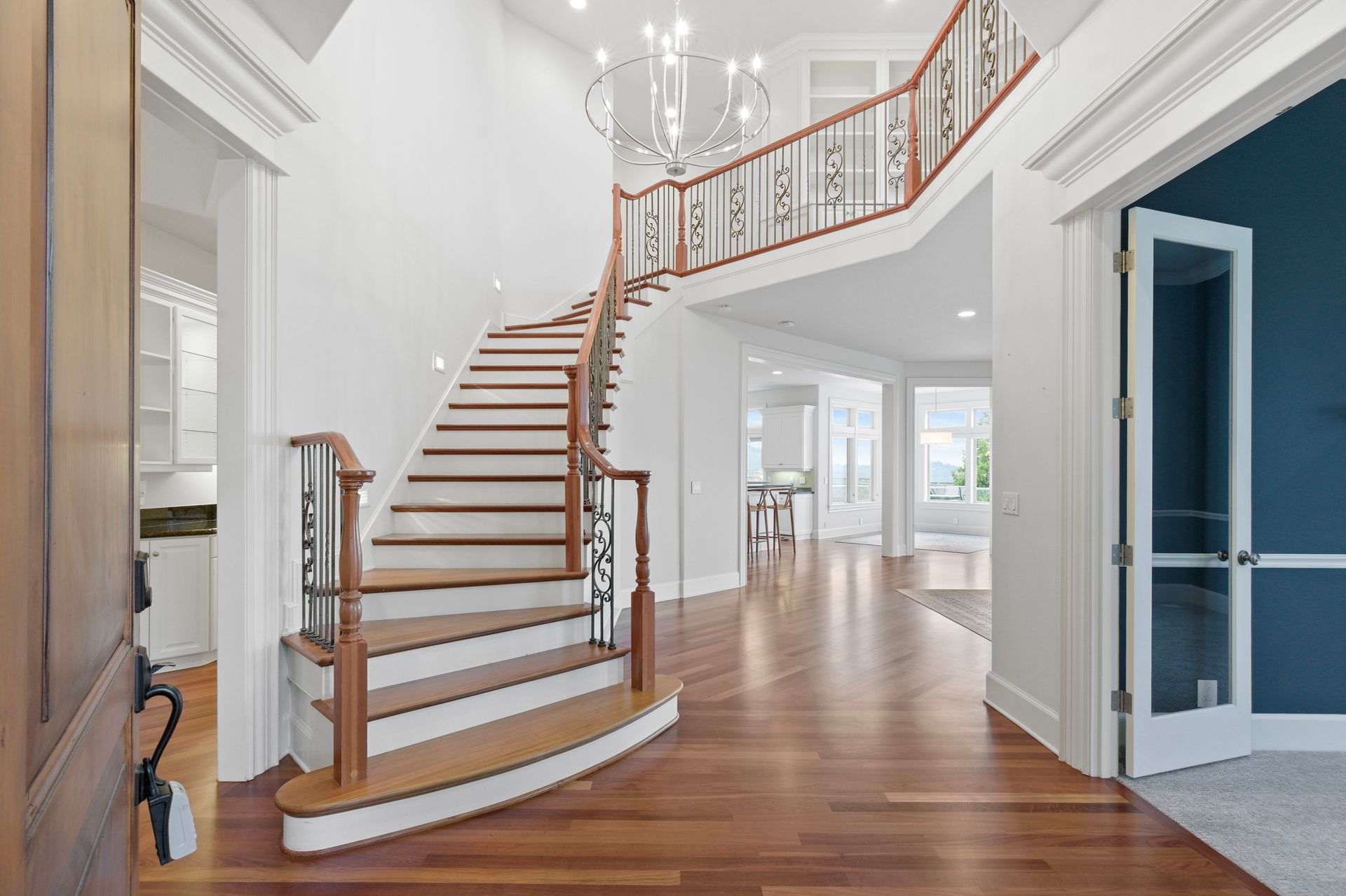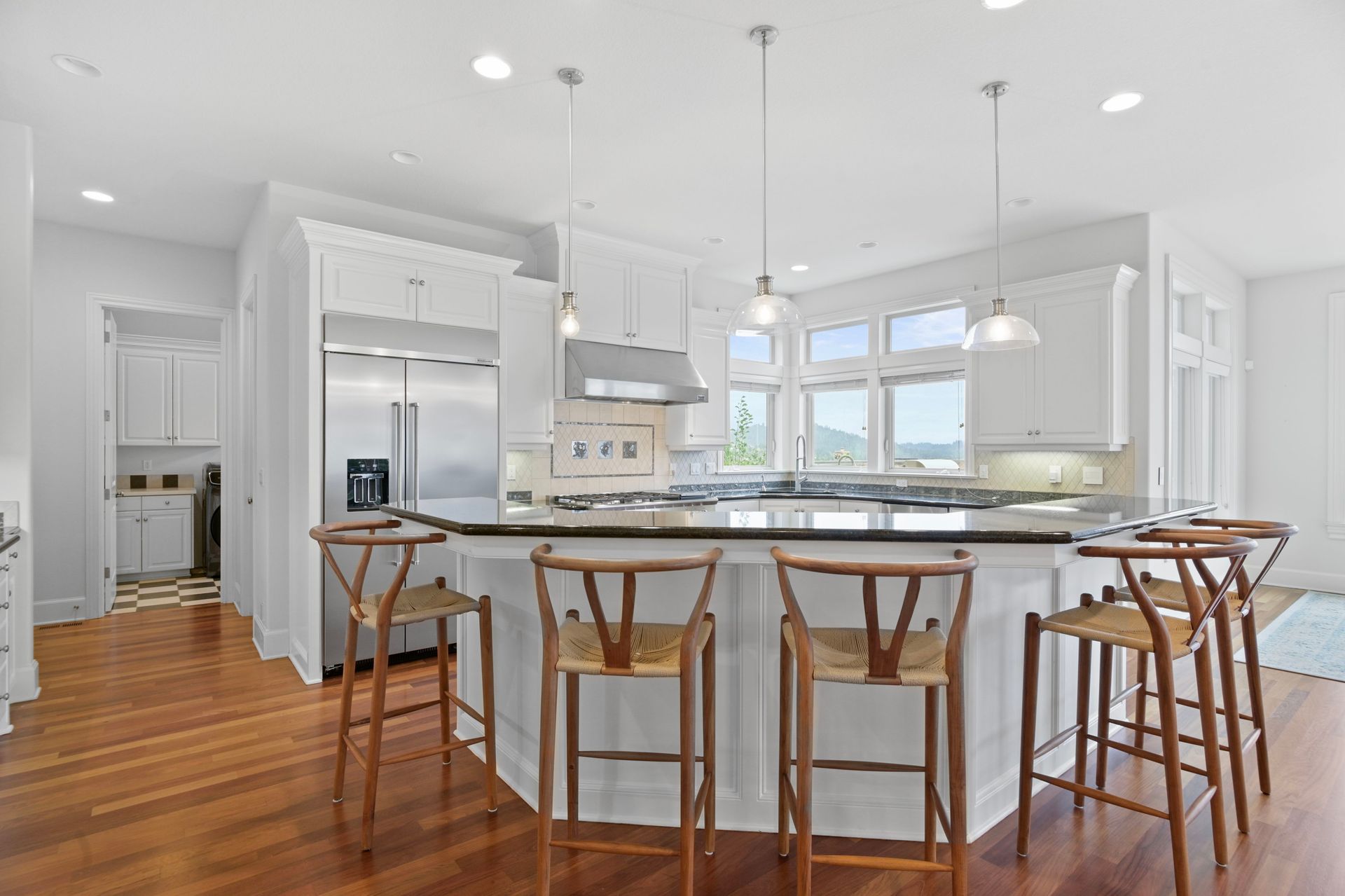 The home boasts a spacious layout with abundant natural light throughout, creating a warm and inviting ambiance. The primary bedroom is generously sized and offers ample space and spectacular views. The additional four bedrooms provide flexibility for a variety of uses, such as home offices, guest rooms, or personal retreats. The home's entertaining spaces are thoughtfully designed, allowing for seamless indoor-outdoor living. The outdoor kitchen is perfect for hosting gatherings and alfresco dining, complemented by the tranquil setting that provides a private and serene atmosphere.