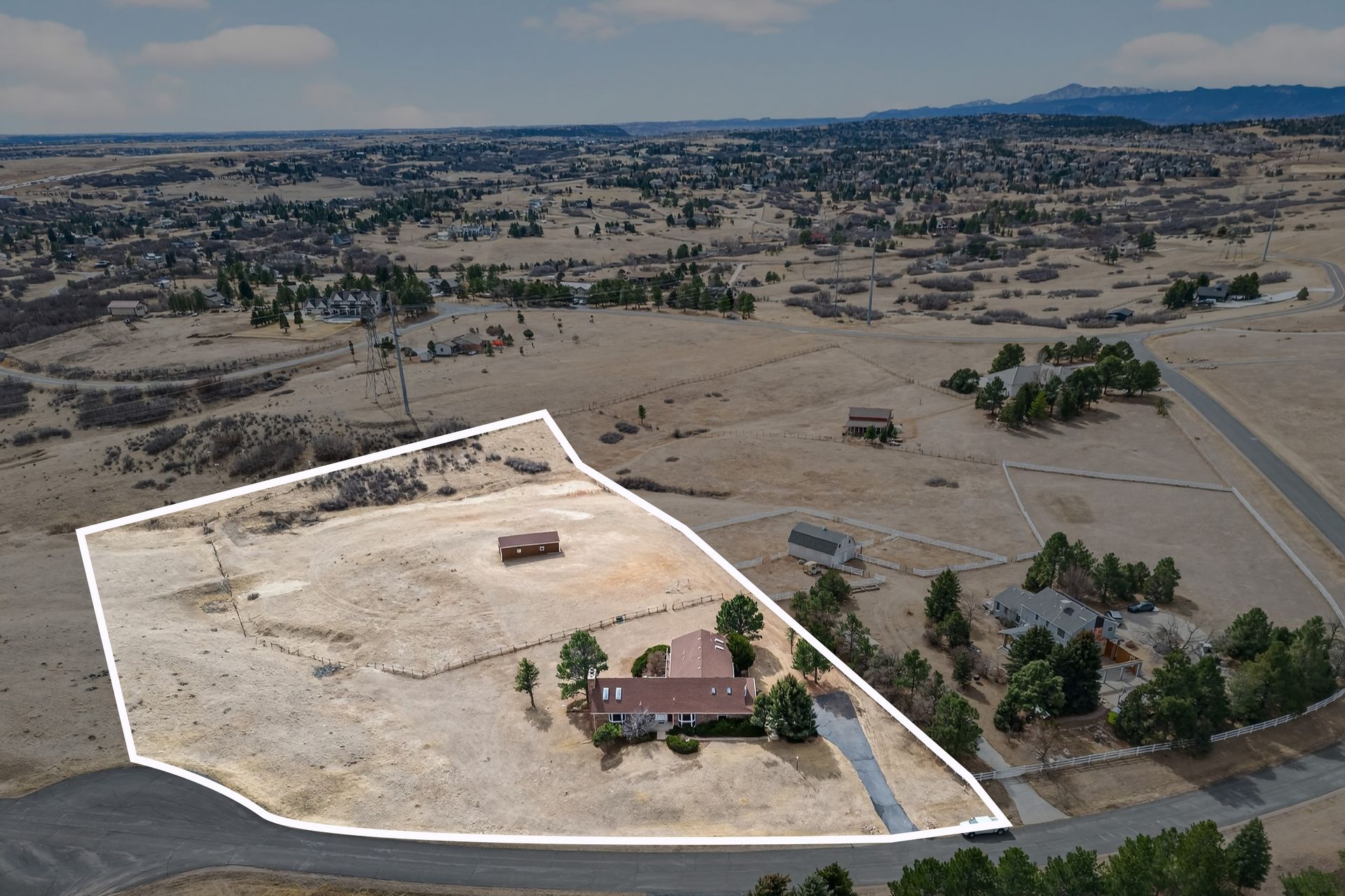 Set within the rolling landscape of Surrey Ridge Estates, this private five-acre property captures the essence of Colorado’s open-space lifestyle while remaining remarkably connected to the city. Expansive meadow and mountain views, highlighted by the distant silhouette of Pikes Peak, create a sense of place that feels both grounded in nature and elevated in experience. Here, privacy and accessibility exist in quiet harmony, with Lone Tree, Castle Rock, and the Denver Tech Center just minutes away. The custom ranch residence unfolds across approximately 4,800 finished square feet, thoughtfully positioned to take full advantage of its natural surroundings. Light-filled living spaces open outward to a wrap-around Trex deck, creating a seamless connection between interior comfort and the expansive landscape beyond. The home’s generous proportions and open flow provide an inviting environment for both intimate gatherings and larger-scale entertaining. Equestrian functionality is integrated into the property through a two-stall barn equipped with water and electricity, offering a foundation for a horse-centered lifestyle or the flexibility for hobby use. The acreage itself invites vision, whether expressed through curated outdoor living areas, refined landscape design, or simply preserved as an expanse of natural beauty. Constructed with enduring craftsmanship and maintained with care, the residence presents a compelling opportunity to reimagine interior spaces while benefiting from an increasingly uncommon land offering in this established acreage community. Properties of this scale and proximity are seldom available, positioning the estate as both a meaningful lifestyle choice and a lasting legacy investment. This is a place where the rhythm of wide-open Colorado living meets the convenience of metropolitan access, a setting defined as much by its land as by the life it makes possible.